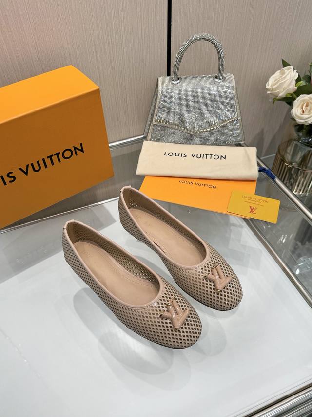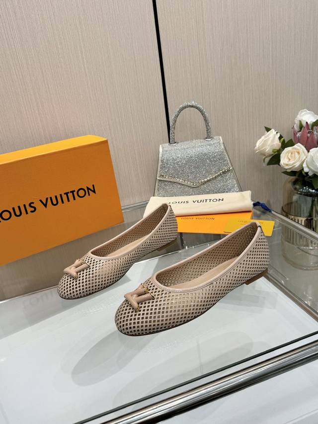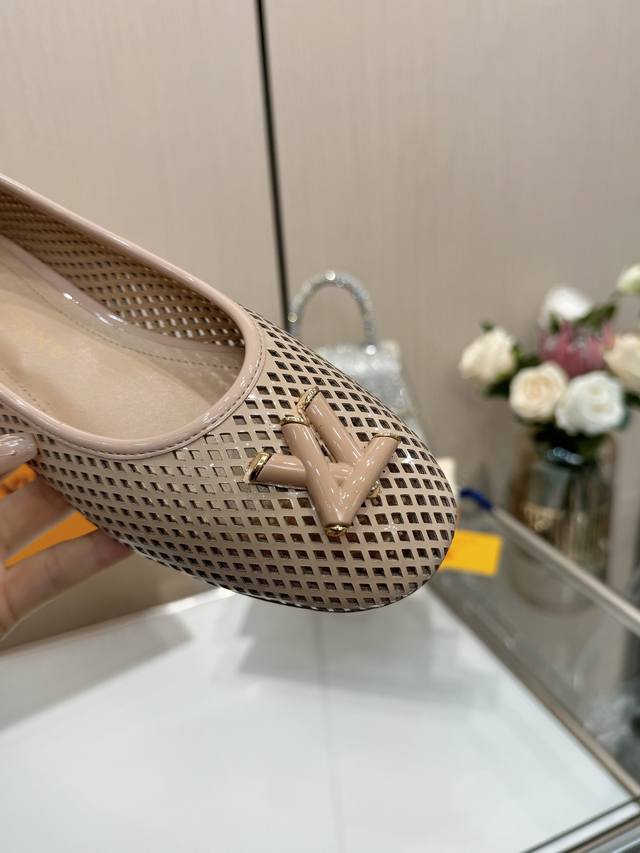 Latest L-brand runway style flat hollow-out shoes, updated simultaneously with physical series, factory direct wholesale: Perfect last + electroplated buckles, collar edging, full upper perforation, complex craftsmanship, comfortable flat design, no foot fatigue, original molded last, perfect 1:1 shape, high-end quality, imported high-end fabric presents exquisite texture! Material: Imported calfskin patent leather; Lining: High-quality soft sheepskin; Insole: Imported goatskin; Custom-made A-grade high-density private mold outsole; Sizes: 35-40, 34, 40, 41 (custom orders are non-refundable).