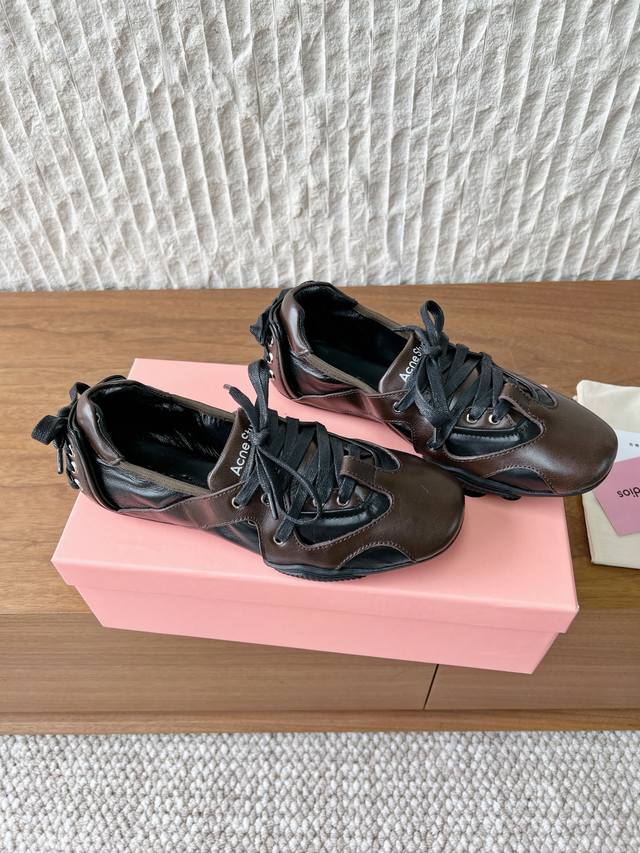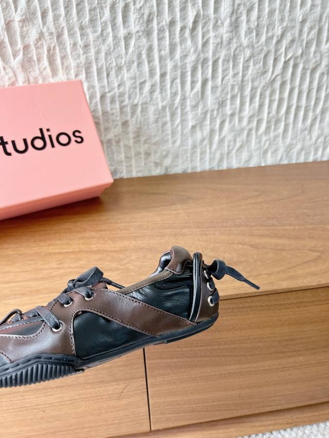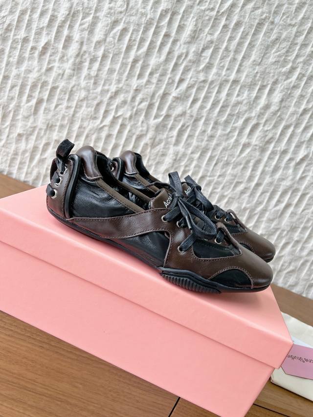 Leather G131 Acne Studios Niche Trendy Brand 26Ss Early Spring New Ballet Style Bow-Tie Lace-Up Low-Cut Shoes DDD Reimagining the classic ballet flat silhouette, combining the romantic elegance of ballet with a casual street style. Some styles also incorporate retro distressing and Y2K tech elements. Ddd The toe features the classic rounded shape of a ballet flat, with a lace-up design on the front and a decorative strap at the heel. The tongue is printed with the Acne Studios brand logo, and the ultra-thin sole creates a lightweight feel. DDD Material: Original imported cowhide Ddd Insole: Sheepskin Ddd Outsole: Original custom non-slip rubber outsole Ddd Sizes: 35-39 40 (Custom sizes are non-refundable/non-exchangeable) DDD