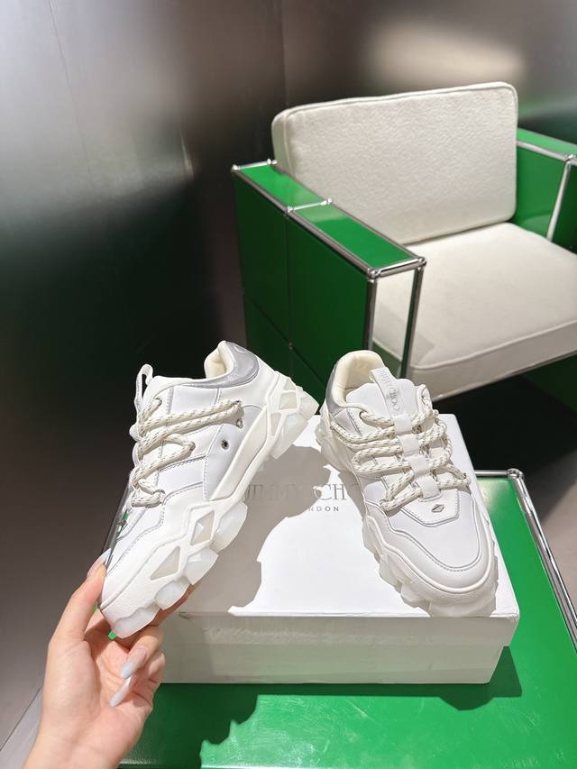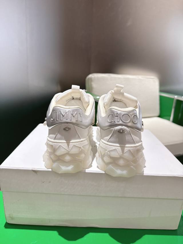 Leather with Diamond Finish 570 K041 Jimmy Choo 2025 Spring/Summer New Diamond X II M Series Dad Shoes - Hot New Arrival! Made with soft leather, these shoes feature an exaggerated, three-dimensional silhouette for a unique and stylish sporty look. The distinctive sole uses the brand's iconic Diamond multi-faceted design for a comfortable fit and a visually elongating effect. The subtly adjusted Lycra lining with perforations allows air and moisture to escape, ensuring breathability and comfort. The cleverly combined materials and thickened insole make your weekends or leisure time feel lighter, more agile, comfortable, and stylish! Upper: Top-grain cowhide suede; Outsole: TPU rubber foam combination for shock absorption, slip resistance, and wear resistance; Lining: Breathable Lycra; Insole: PU shock-absorbing insole; Size: 35-45