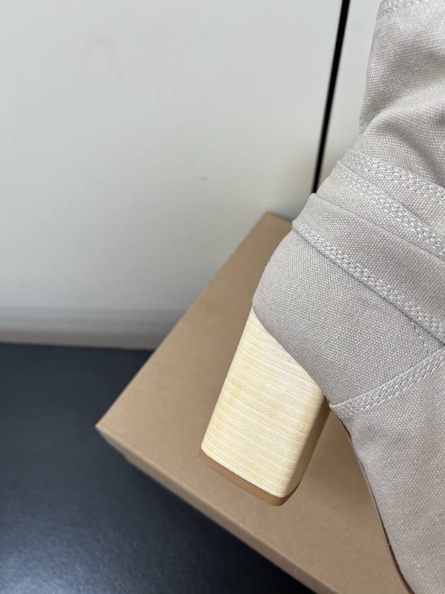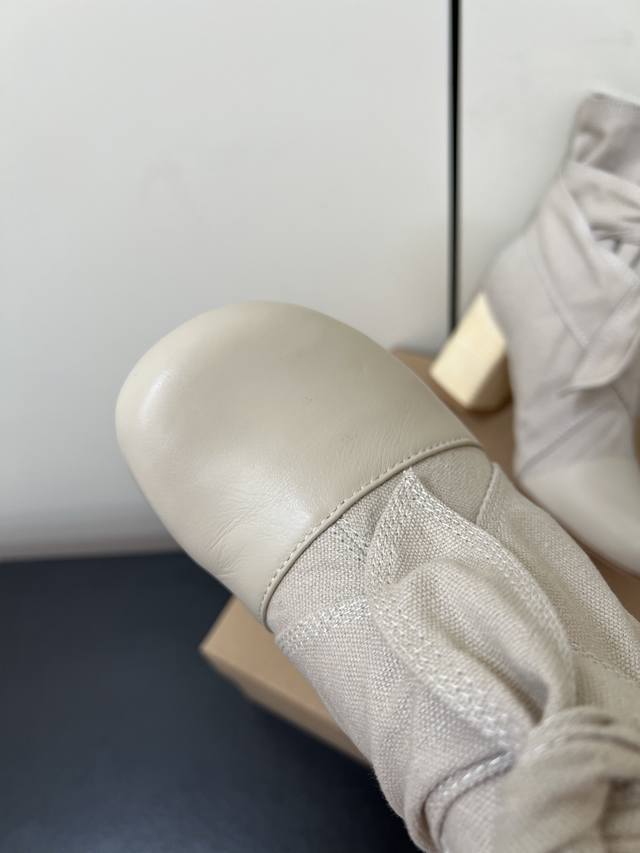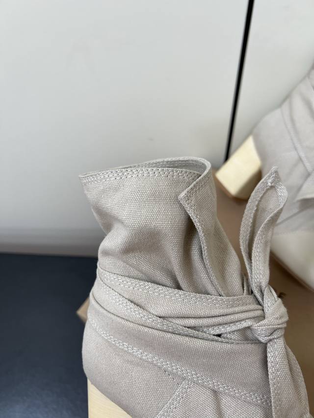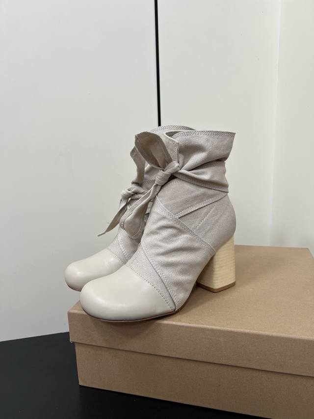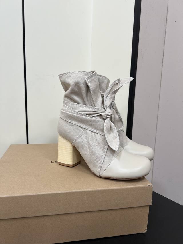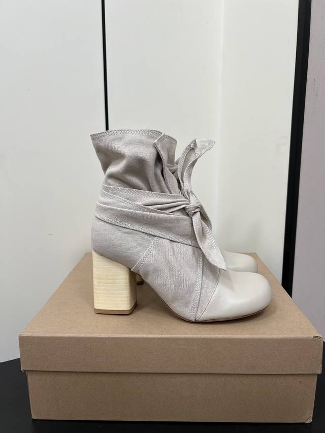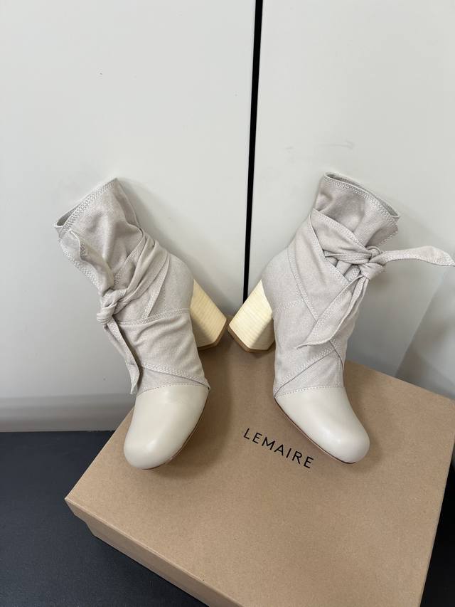Lemaire 24Ss Autumn/Winter Chunky Heel Bowknot Canvas Simple High-End Ankle Boots