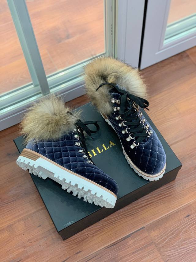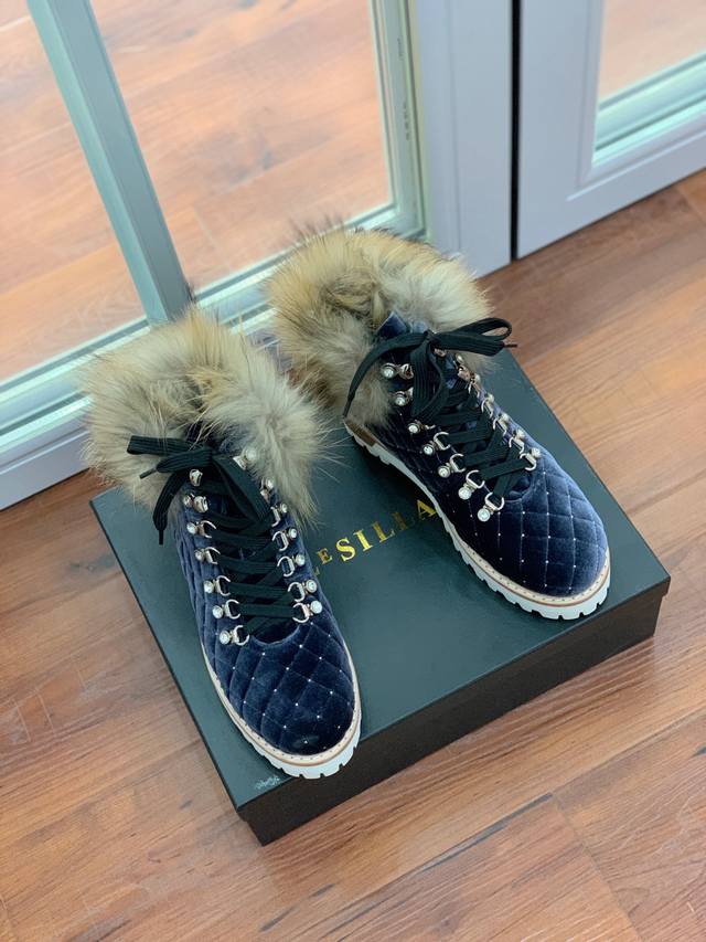 Lesilla, fox fur collar. High-quality import. Lesilla is a well-known Italian brand. Its designs are inspired by making a woman's image authentic and captivating. The brand is known for its luxurious style; the entire design is full of classic and opulent style, possessing a domineering and alluring beauty. Upper: sheepskin, wool, velvet. Metal rivets, wool lining. Fox fur collar. Sizes: 35-41. Sizes 40 and 41 are custom-made and non-refundable. Wholesale: wool velvet upper. Leather upper.