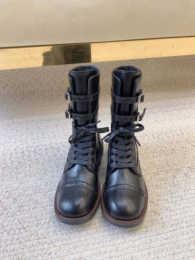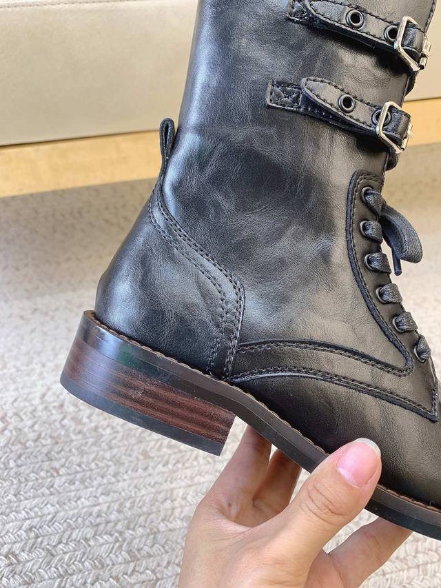 Lnfoll*Ss25 New Double-Strap Lace-Up Boots