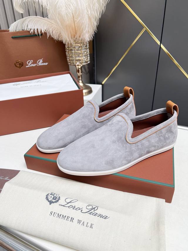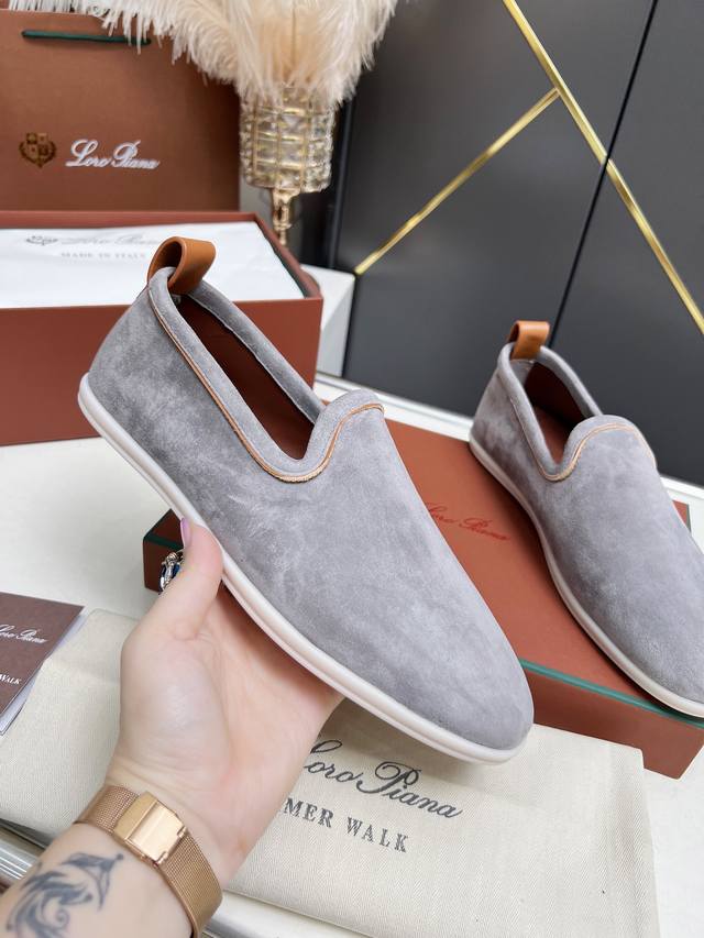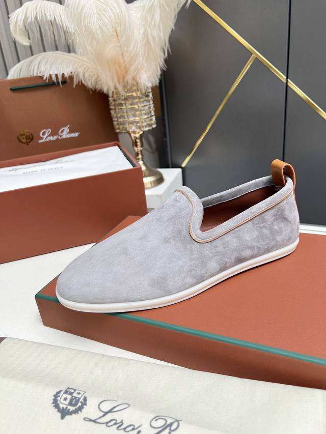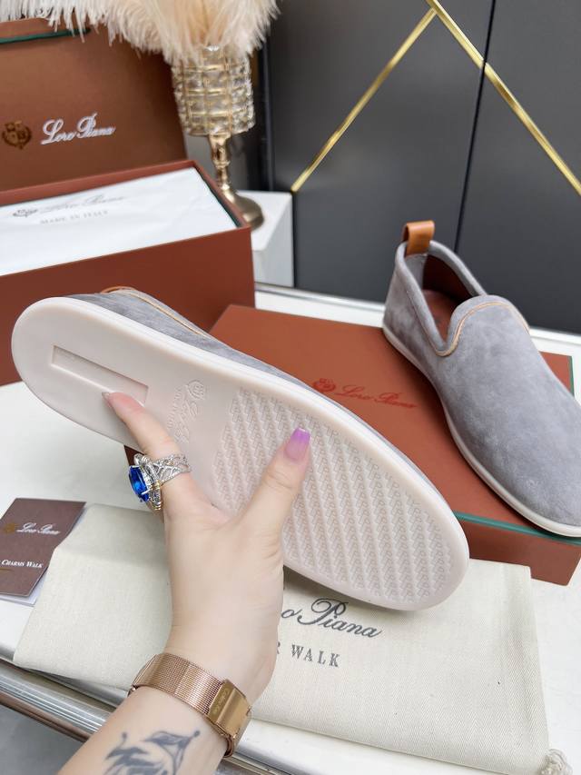 Loro Piana, a classic all-season brand. Founded on April 24, 1924, the current Loro Piana company is now in its sixth generation of family business, providing high-quality products to discerning customers. The upper is made of imported suede, the lining is hand-stitched with water-dyed cowhide, and it features an original signature-printed rubber sole that is lighter and more comfortable than traditional rubber soles. Size: Men's 39-44, 45 (custom sizes are non-refundable). Custom colors are available based on provided images. Factory direct supply year-round.