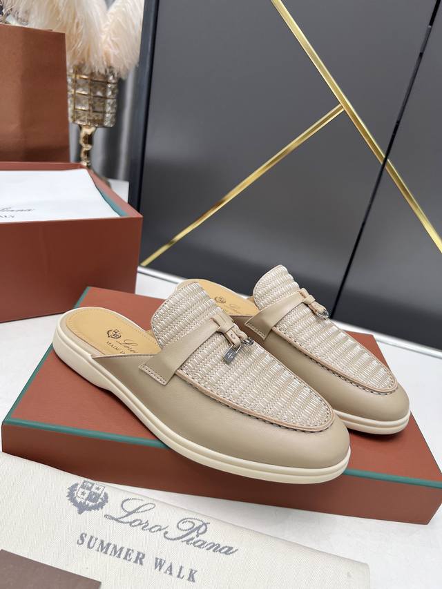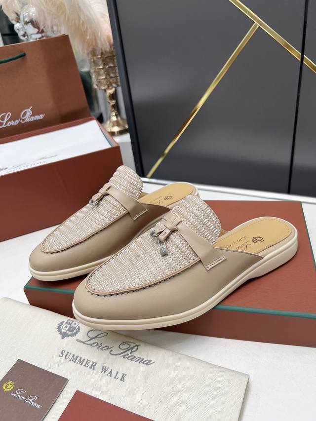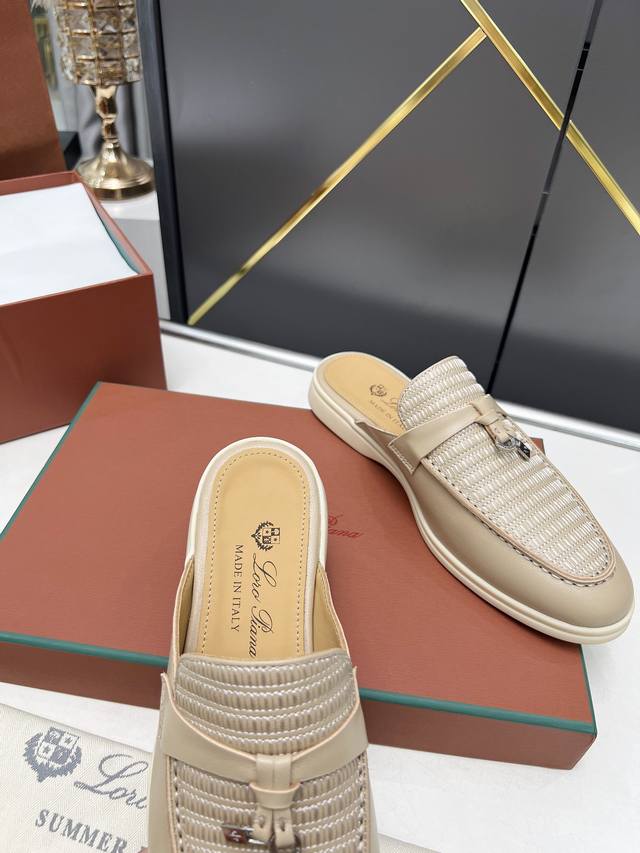 Loro Piana, a family-run, all-season half-slipper with embroidered details. The current Loro Piana company was founded on April 24, 1924. Now in its sixth generation, the family business provides high-quality products to discerning customers. The fabric is imported cashmere, the lining is made of sheepskin with hand-stitched thread, and it features the original signature lettering on a rubber sole, which is lighter and more comfortable than traditional rubber soles. Sizes: Women's 36-41, 35, 41, 42. Custom orders are non-refundable. Colors can be customized based on provided images. Factory direct supply year-round.