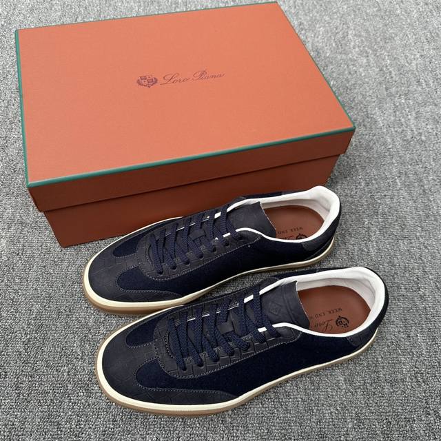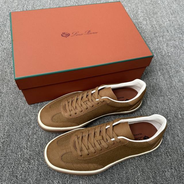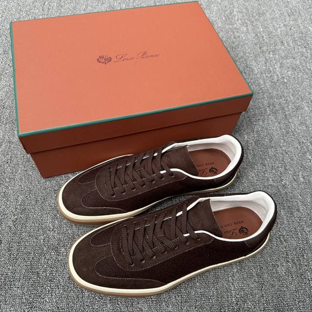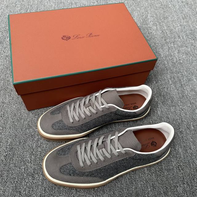 Loro Piana's new cashmere tennis shoe features an ultra-low-top design, suitable for year-round wear, and is waterproof. The covered sole creates an effortlessly attractive color combination, harmoniously blending functionality with understated personality. It is the ideal shoe for urban wear. The heel is decorated with a Kummel-colored inlay. The soft calfskin tongue is embossed with the Lp logo and has cotton laces.