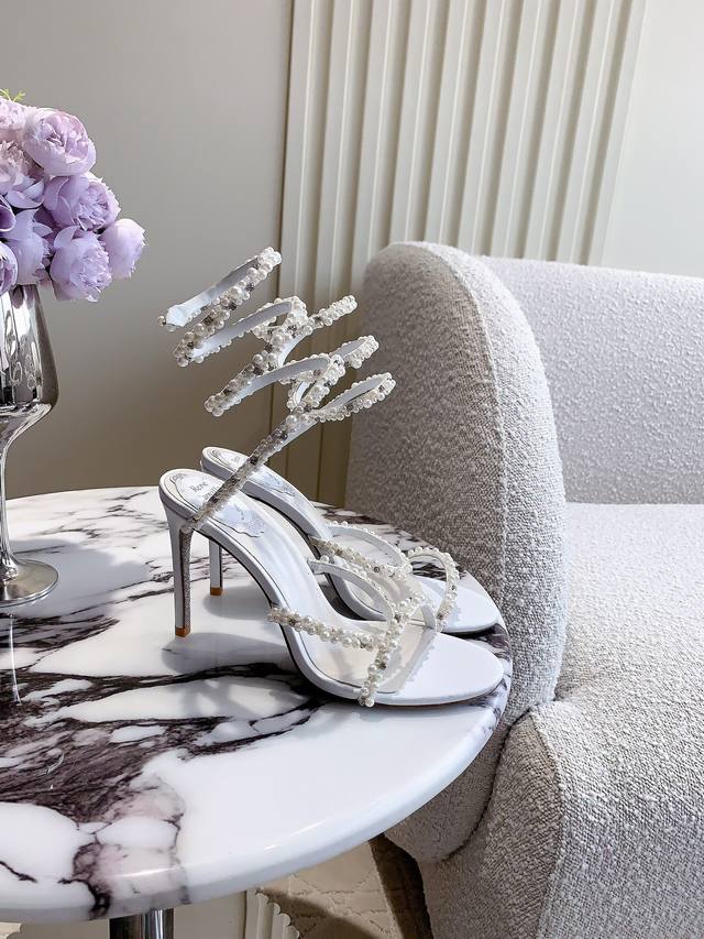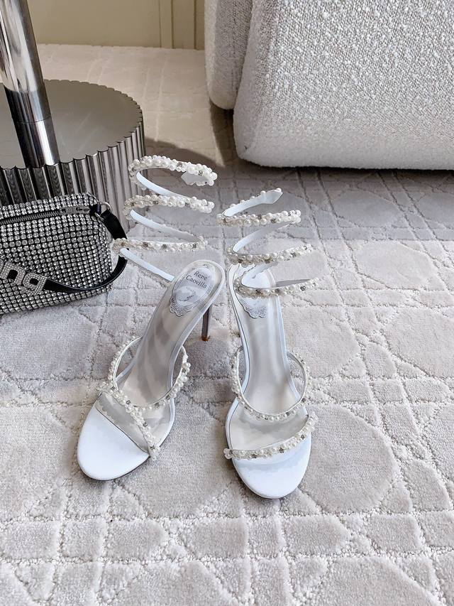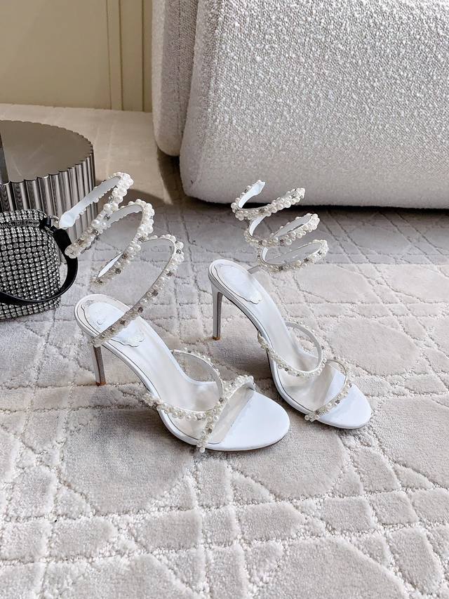Low Heels & High Heels DDD Ren* Caovill* Snake Pearl High-Heeled Sandals - Exquisitely elegant and ethereal, truly a work of art! DDD Hand-stitched pearl upper, sheepskin insole, Italian genuine leather sole, heel height 4.5cm & 9.5cm. Sizes 35-39, 34, 40, 41, 42, 43. Custom made. DDD