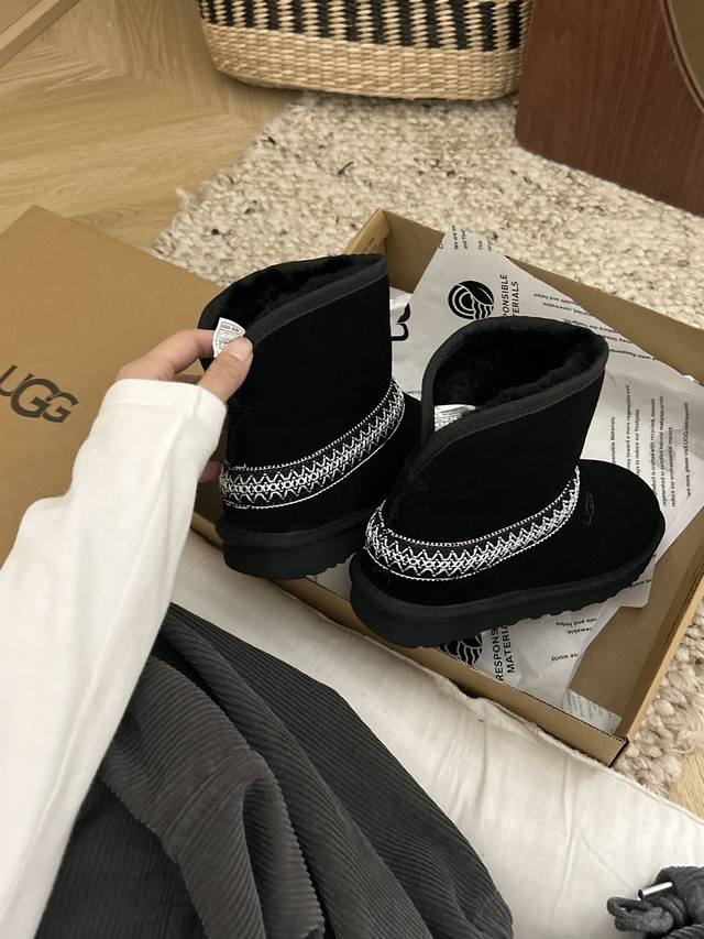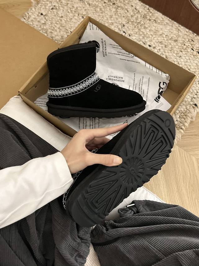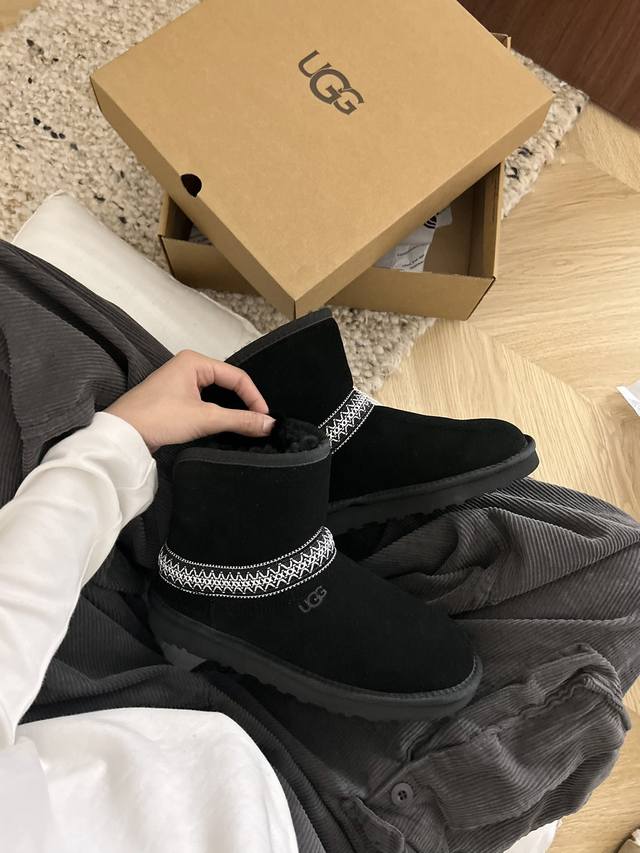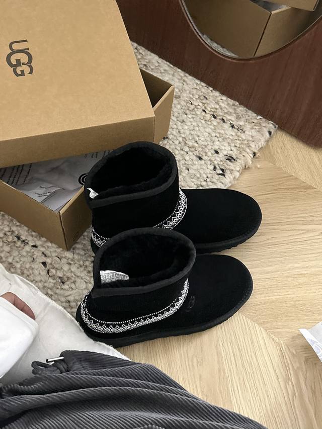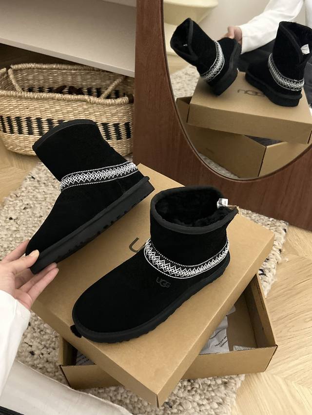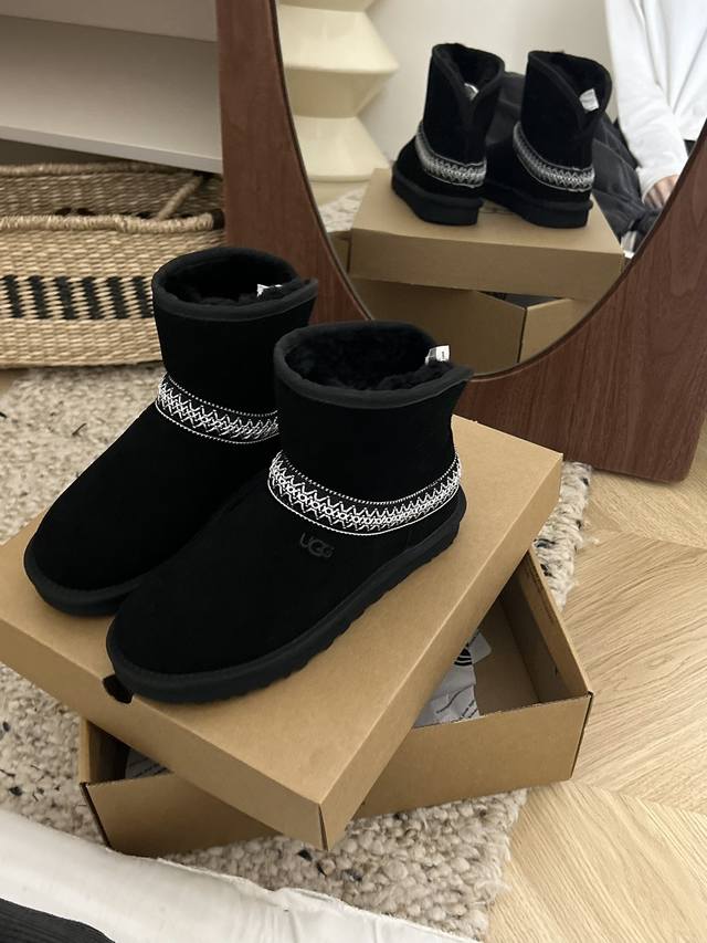 Low-top black DDD Ugg flat-soled crescent style, style 54, classic and versatile woven ethnic style, new ethnic style, made of cowhide and wool, available in two colors: black and chestnut. DDD Sizes 35-40 DDD