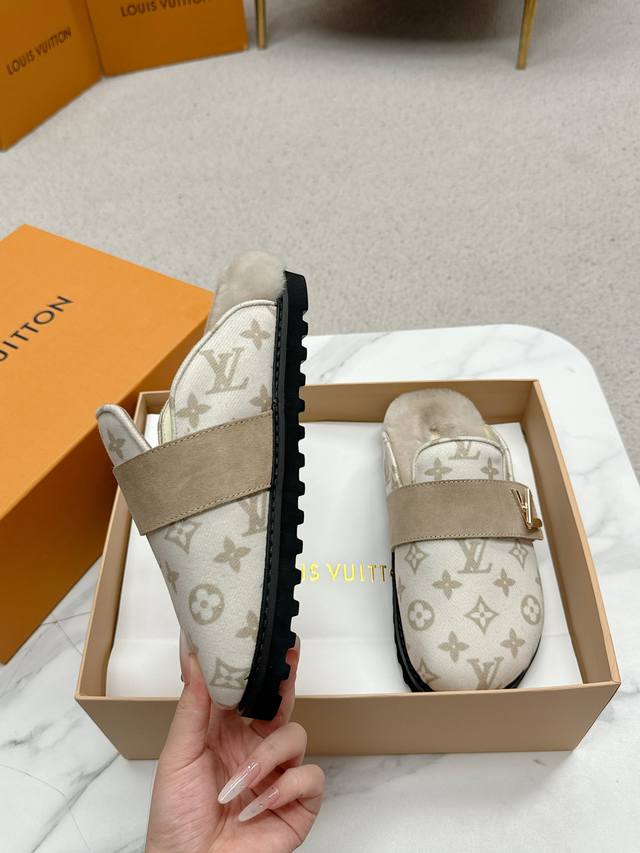 L'V Cosy Comfort Flat Slippers feature a soft wool lining wrapped in suede cowhide leather, enhanced with a resilient insole and lightweight microsole for added comfort. The embellishments add a touch of sophistication, reminiscent of the classic Twist handbag's clasp design. Features include: Adjustable suede cowhide and wool leather straps, resilient insole, lightweight microsole, and classic embellishments. Sizes: Women's 35-40, Men's 39-44, Women's 40.41, Men's 45.46. Customization is available, but returns and exchanges are not accepted.