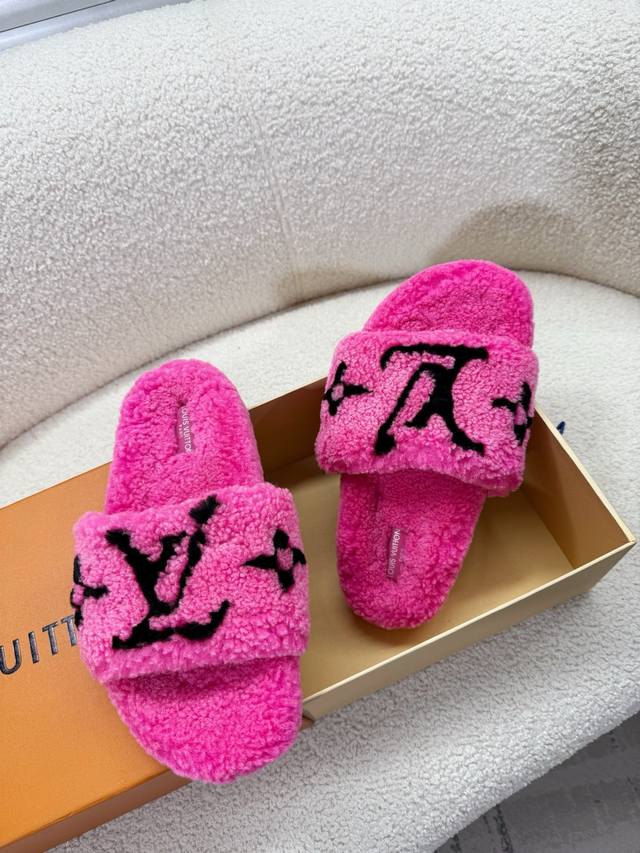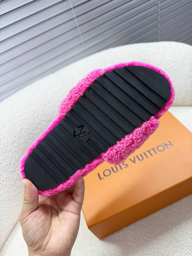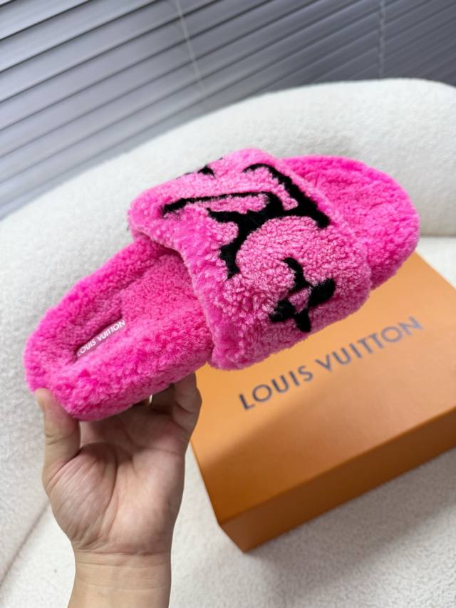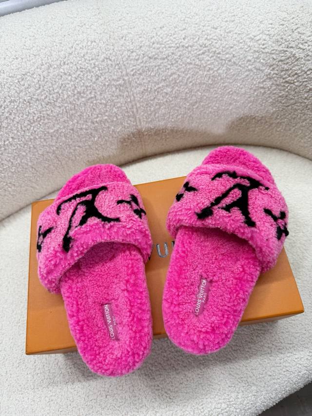 The fabric lining, foot pads and bottom are all lambswool patchwork colors. The logo presents a luxury brand. The original TPU non-slip outsole
