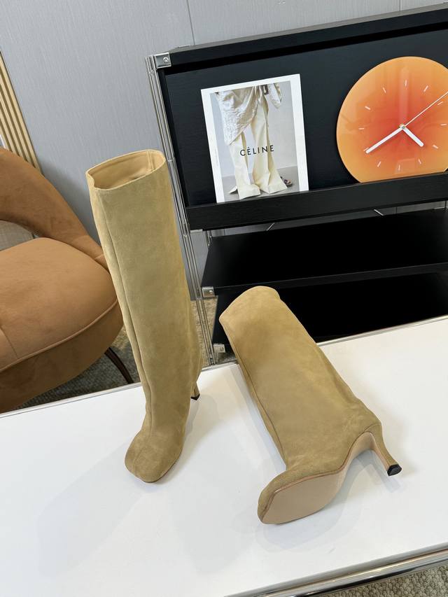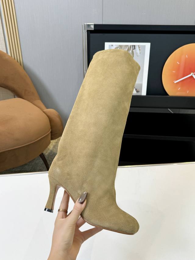 m6 Niche knee-length knight boots for women, Jurchen suede matte retro trouser boots, long boots, high-heeled western cowboy boots