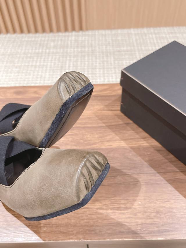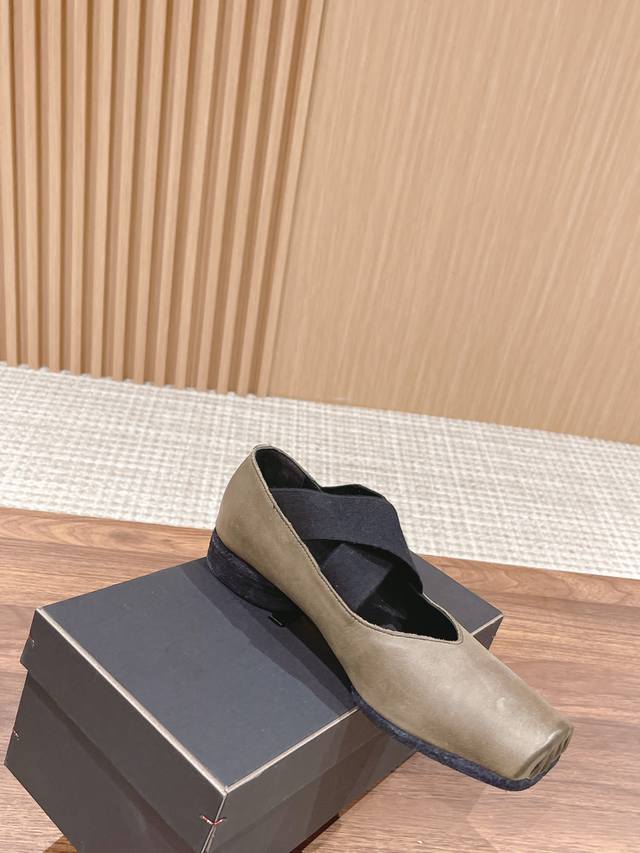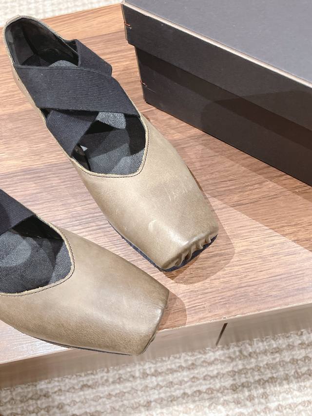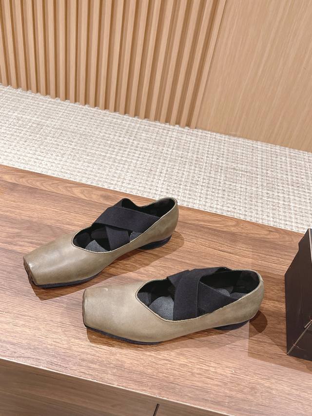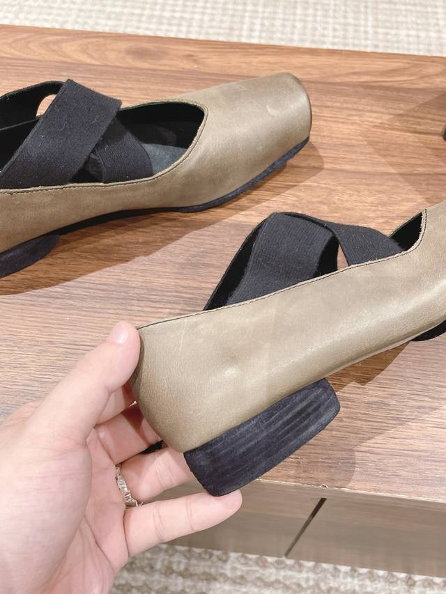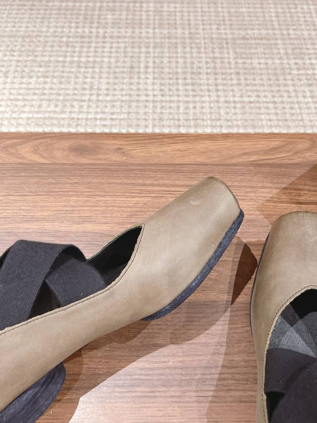 Made in Dongguan. Following the name of Uma Wang, the brand behind the dark ballet flats, Uma Wang was the first Chinese designer brand to be included in the official schedule of Milan Fashion Week. Today, Uma Wang has become a staple in major avant-garde fashion boutiques overseas. The upper is made of full vegetable-tanned leather, hand-rubbed and roller-washed for a distressed look. The outsole is made of imported full leather with a layered heel. Custom-made original pure cotton distressed elastic band; most on the market use polyester, lacking the original's fuzzy and wrinkled feel. The sole features hand-stitched stitching. Sizes: 35-39 DDD