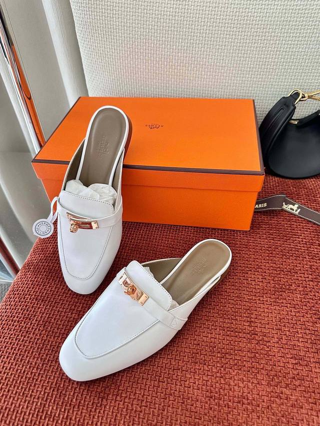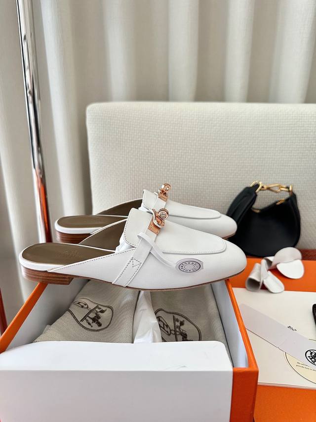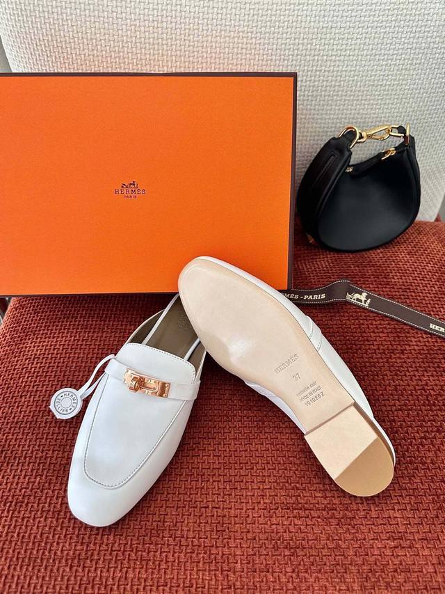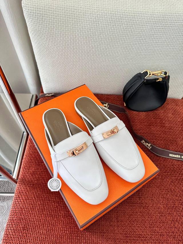 Made In Guangdong * Classic Kelly Buckle Oz Mule Shoes | Authentic Purchase, Resale Grade - White Gold Buckle Material And Craftsmanship: Authentic Calfskin, Goatskin Fabric, Sheepskin Lining, Shoe Upper Adorned With A Palladium-Plated Kelly Buckle, Italian Genuine Leather Outsole 2