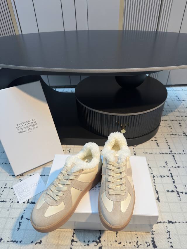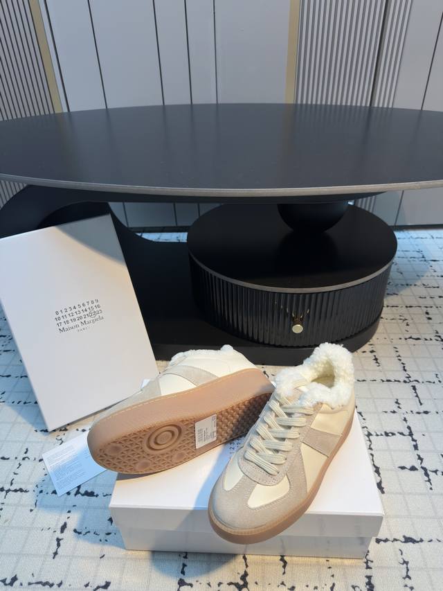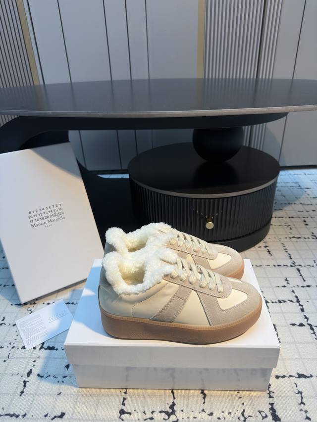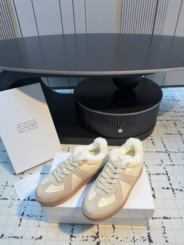 Maison Margiel* 25Aw Autumn/Winter New Classic Thick-Soled Retro German Trainer Shoes DDD Featuring a leather and suede patchwork design, the shoes boast a delicate texture and rich layers. The retro lacing system paired with distressed laces adds a vintage charm. The gum rubber outsole is durable and highly recognizable. The overall design is simple yet detailed, a typical embodiment of the brand's "deconstructivist" style. DDD Combining retro, minimalist, and sophisticated elements, these shoes are versatile and a timeless fashion staple. Pair them with distressed jeans and a basic white T-shirt, topped with a khaki work jacket for a casual retro everyday look. DDD Upper: Cowhide DDD Lining: Wool DDD Outsole: Original Mold Outsole DDD Height Increase: 5.5cm DDD Sizes: 35, 40 Sizes 40 and 40 are custom-made, no returns or exchanges DDD