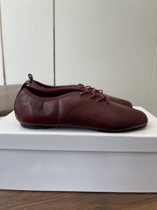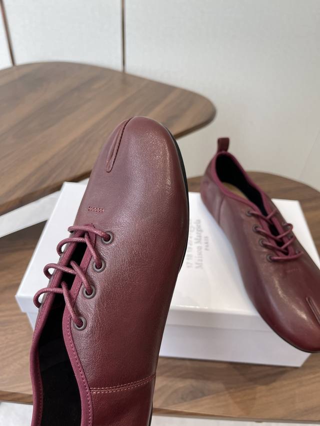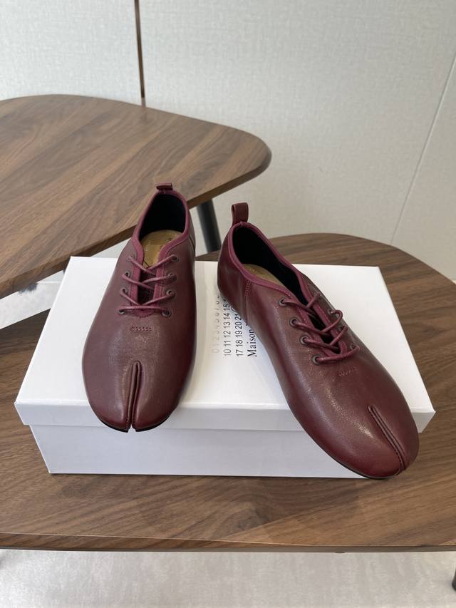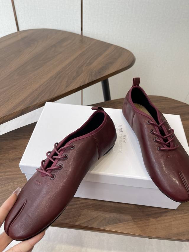Maison Margiel Classic Split-Toe Flat Shoes DDD Featuring the iconic split-toe design and lace-up style, these shoes offer a unique and distinctive look, ensuring you won't see them everywhere. The upper is made of fine leather, with some styles featuring a metallic sheen or textured finish, showcasing a high-end feel. The shoe features the brand logo inside, maintaining a unified aesthetic. DDD Combining minimalism and avant-garde style, these shoes can be paired with minimalist suits, vintage jeans, and uniquely designed dresses, adapting to various styles from avant-garde to relaxed to sophisticated. The flat sole provides a comfortable feel; the shoe shape conforms to the foot, making them suitable for everyday commuting or casual occasions. DDD Upper: Cowhide/Sheepskin DDD Lining: Double-sided suede DDD Outsole: Genuine leather outsole DDD Height Increase: 2cm DDD Size: 35-41 Size 40 (Size 41 is custom-made and non-refundable/exchangeable DDD