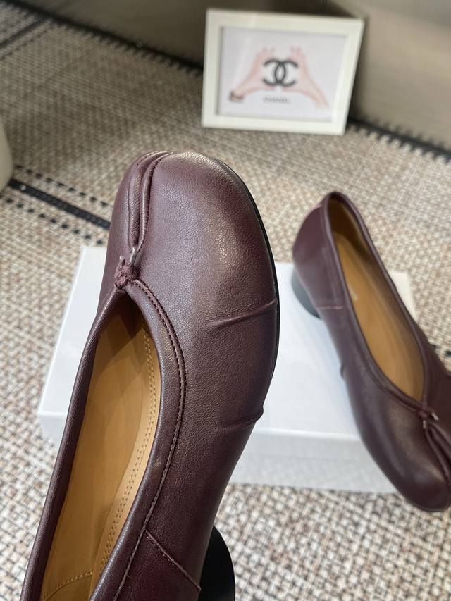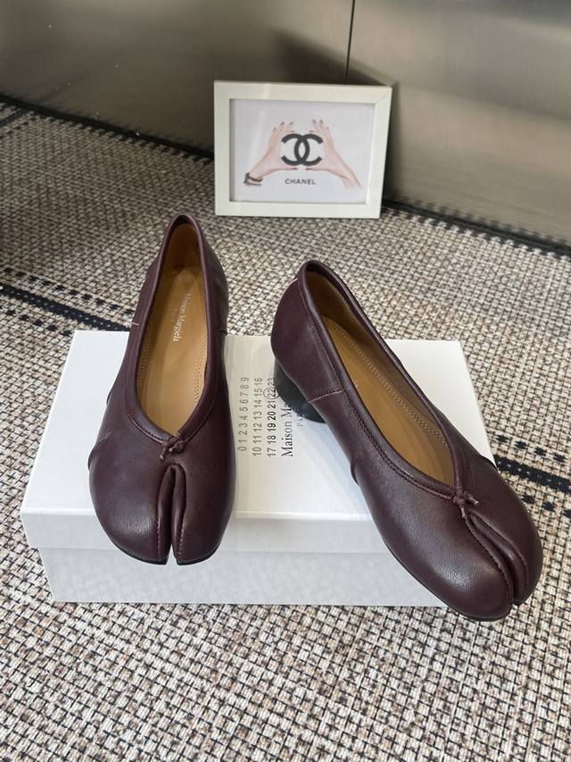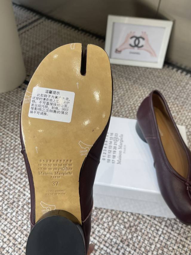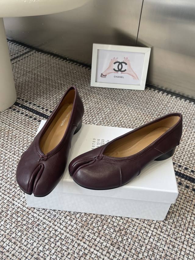 Maison MargielaحMm6 Margiela 25Ss New Chunky Heel Split-Toe Shoes Tabi Split-Toe Ballet Flats DDD Original mold, double-layer genuine leather sole, original last, very stylish and easy to match with various styles. A blessing for short legs, instantly transforming them into long legs DDD Unrestrained by conventions, be yourself as you like~ Super soft and comfortable on the feet DDD Upper: Imported sheepskin Lining: Original sheepskin Outsole: Original Italian double-layer genuine leather sole DDD Size: 35-40 Size 40 is custom-made and non-refundable DDD