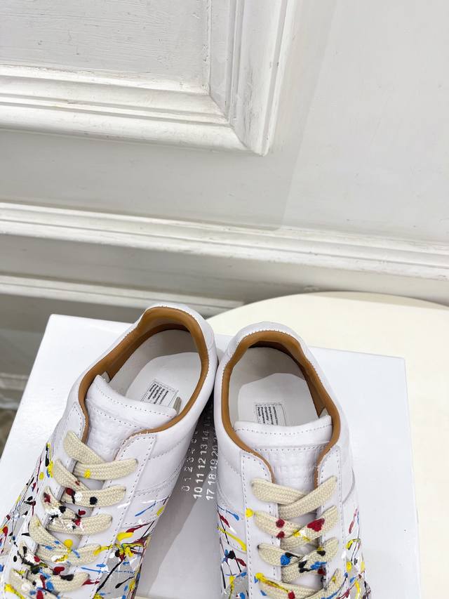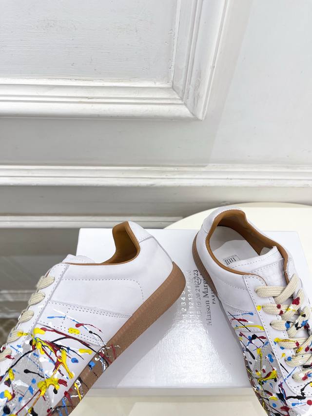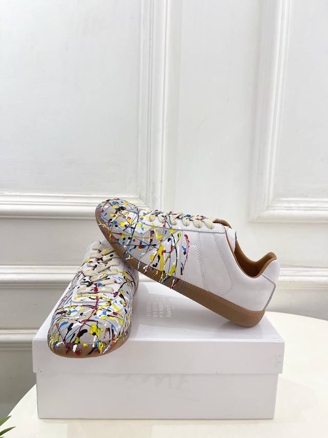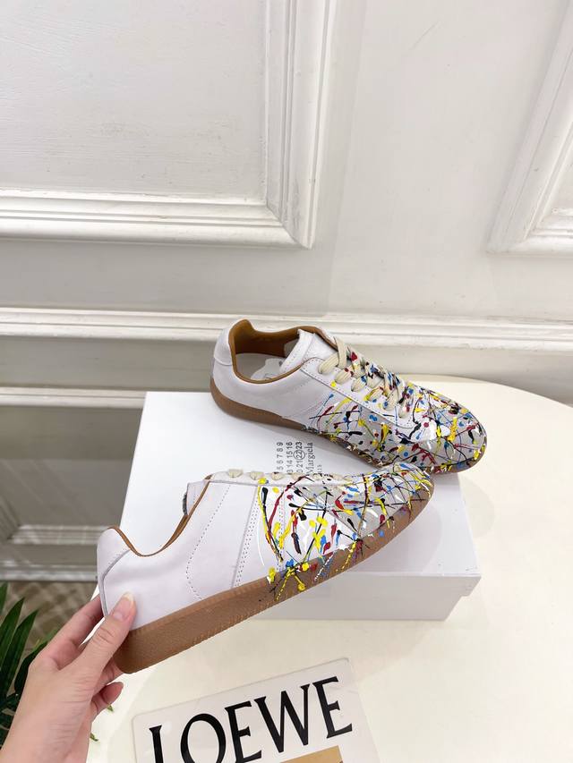 Maison Margiela 2025Ss Autumn/Winter New Arrival: Splatter Paint Couple Low-Cut German Training Sneakers DDD Mm6, as one of the most popular designer brands in the past two years, offers simple yet luxurious designs that you'll love. If you don't want to wear the same shoes as everyone else, check out this brand. It's relatively niche, yet so easy to match. You can see this brand everywhere on Instagram and Xiaohongshu! 1:1 Original Custom DDD Upper: Original Custom Cowhide DDD Lining: Imported Silk Sheepskin Lining DDD Outsole: Original Mold Anti-Slip Outsole DDD Sizes: Women's 35-39, 40, 41 (Customizable) DDD Men's 40-44, 39, 45, 46, 47, 48 (Customizable) DDD Factory Price (pp): DDD