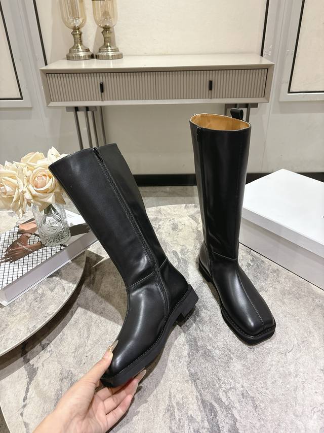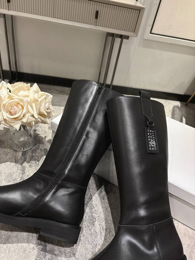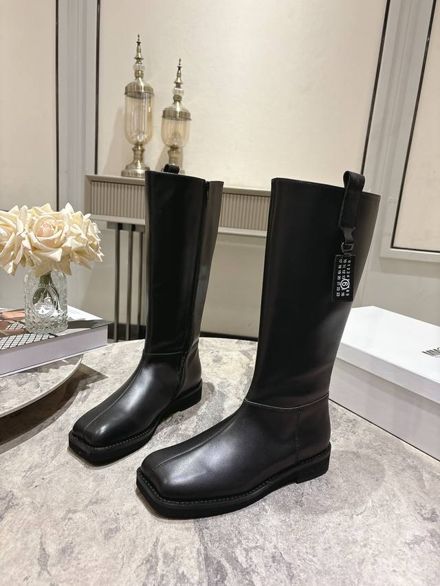 Maison Margiela 25Ss Autumn/Winter New Apple Square Toe Zipper Over-the-Knee Boots DDD Mm6 Tabi Apple Toe Boots Original Last, Very Stylish and Easily Matches Various Styles, A Blessing for Short Legs, Instantly Transforms into Long Legs. Brand Nameplate Embellishment Elevates the Boots' Style DDD Unrestrained by Conventions, Be Yourself Freely~ Super Soft and Comfortable DDD Upper: Made of Original Imported Cowhide DDD Insole: Cowhide DDD Outsole: Original Custom Foam Combination Outsole DDD Size: 35-39, Size 40 Customized, No Returns or Exchanges DDD
