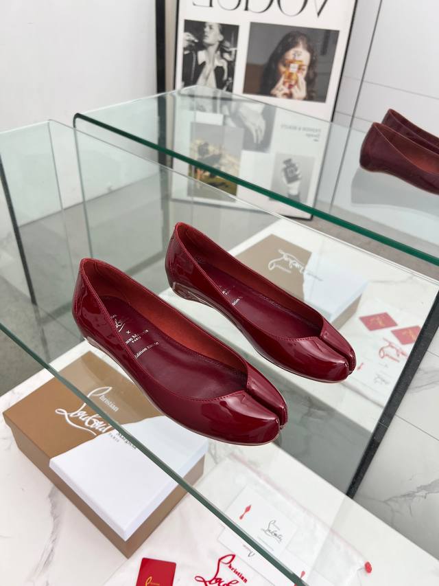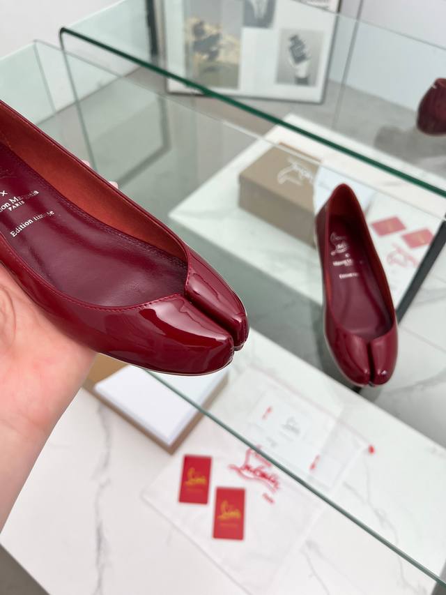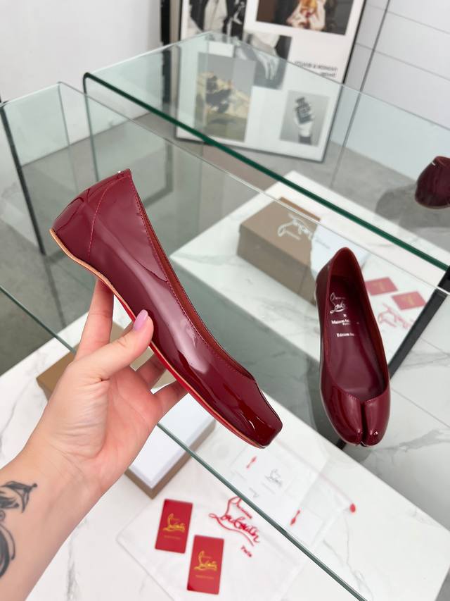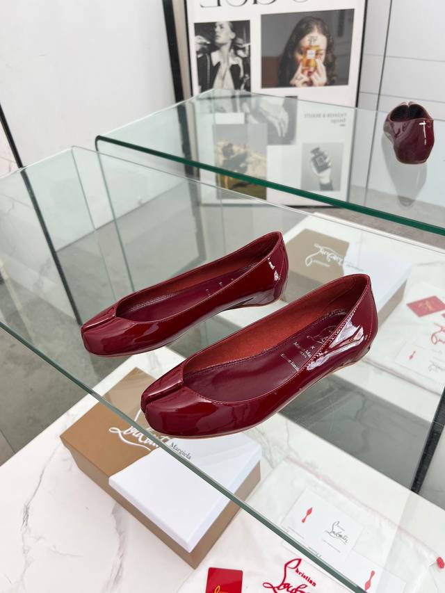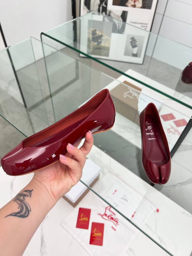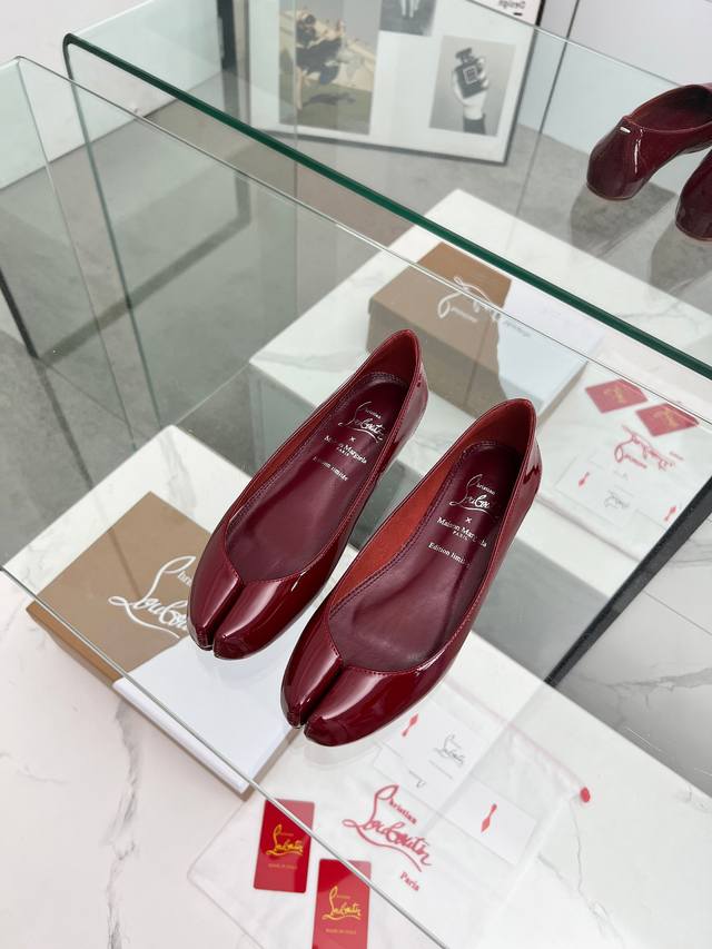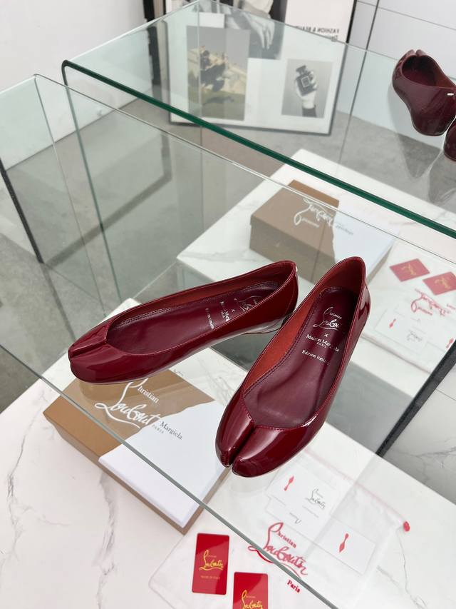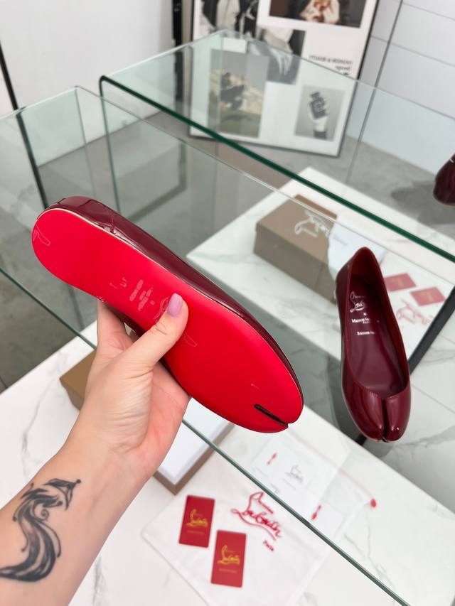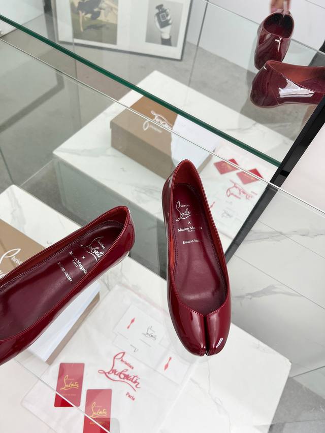 Maison Margiela & Christian Louboutin Collaboration: Red-Sole Split-Toe Flats. Maison Margiela and Christian Louboutin have unveiled their first collaborative footwear collection, skillfully blending the design DNA of both brands with a uniquely feminine, curvaceous aesthetic. This new interpretation of Maison Margiela's iconic Tabi shoe showcases a classic red sole and exquisite craftsmanship. The classic split-toe design is crafted from two separate pieces, rather than the traditional split-toe cut, resulting in an elegant heart-shaped silhouette that mimics the lines of a woman's collarbone. Unconscious allure: These captivating images, deeply embedded in the collective subconscious, imbue the classic Tabi with a subtle and understated sensuality. This perfectly embodies the collection's feminine spirit, blending elegance and seduction. The Marlougiela ballet flat features a slender silhouette, its sculpted lines accentuating a voluptuous and alluring silhouette. Classic hot style