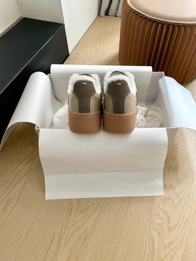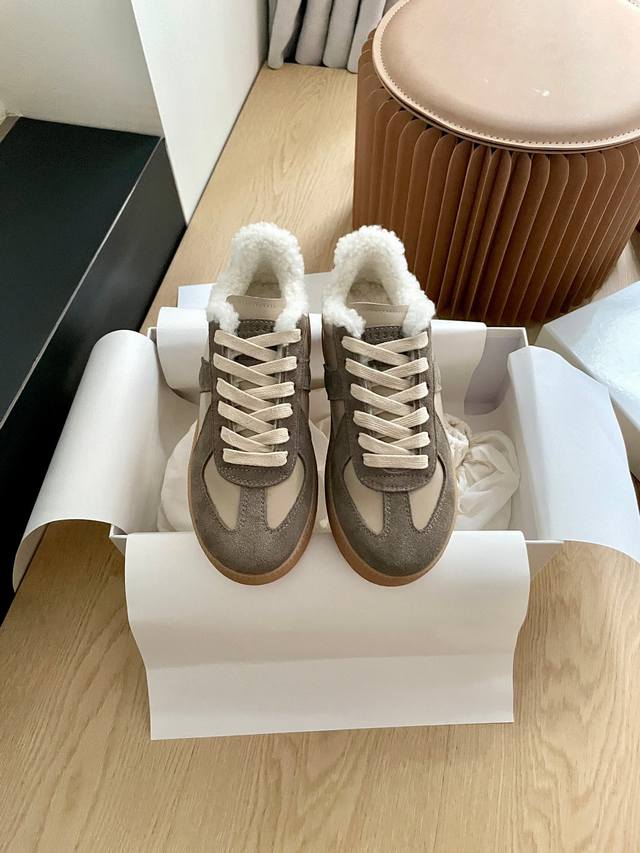 Maison Margiela Newly Upgraded and Replicated Mm6 Couple Style Thick-Soled Wool-Lined German Training Shoes, Margiela German Training Shoes DDD Recommended by major bloggers, these colorless German training shoes are an absolute must-have. DDD Original development, material selection, and color matching are perfect for mass production. DDD The more you look at the details, the more you realize that we strive for perfection. DDD Original cowhide, suede, and dyed to the original color. Authentic leather, full wool lining, and 5cm thick sole. DDD Women's sizes 35-40. Size 40 is custom-made and non-refundable. Original double cloth bag packaging. DDD