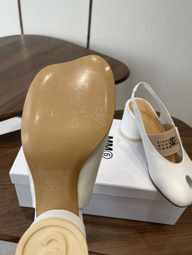 Maison Margiela Spring/Summer New Ballet Mary Jane Flat Split-Toe Sandals DDD Inspired by traditional Japanese tabi socks, these sandals separate the big toe from the other toes, creating a highly distinctive visual effect and showcasing the brand's avant-garde deconstructed style. The split-toe design allows the toes to stretch more, reducing any feeling of restriction. Made with soft leather, they are comfortable for extended wear and enhance foot contact with the ground, resulting in greater stability. DDD They can be paired with casual or formal attire, suitable for various occasions. Made with premium leather, the shoes feature a simple Mary Jane design with a heel strap and the brand logo on the laces, combining quality and design. DDD Upper: Sheepskin Ddd Lining: Sheepskin Ddd Outsole: Genuine Leather Ddd Height: 1cm 6cm Ddd Size: 35-41 Sizes 40 and 41 are custom sizes and cannot be returned or exchanged DDD