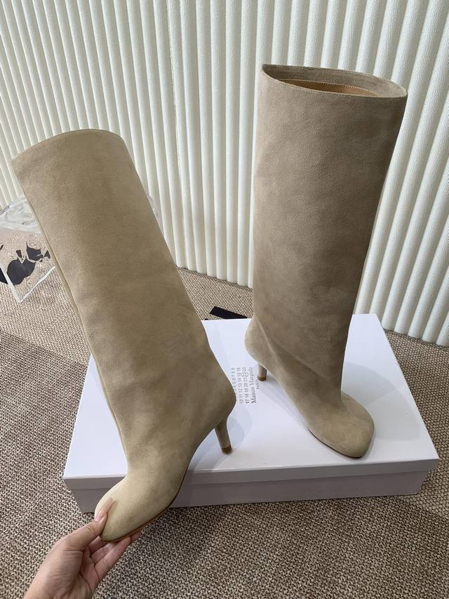 Maison Margiela Suede Wide-Leg Straight-Leg Boots, Over-the-Knee, New Autumn/Winter Stiletto High-Heeled Boots DDD Mm6 Tabi Split-Toe Boots, New Autumn/Winter Arrival, Highest Version, Perfect Split-Toe Tabi Boots, Original Mold, Double-Layer Genuine Leather Sole, Original Last, Very Stylish, Easily Matches Various Styles, A Blessing for Short Legs, Instantly Transforms into Long Legs DDD Unrestrained by Conventions, Be Yourself~ Super Soft and Comfortable DDD Upper: Imported Original Genuine Leather DDD Lining: Original Genuine Leather DDD Outsole: Original Italian Double-Layer Genuine Leather Heel DDD Size: 35-40 DDD