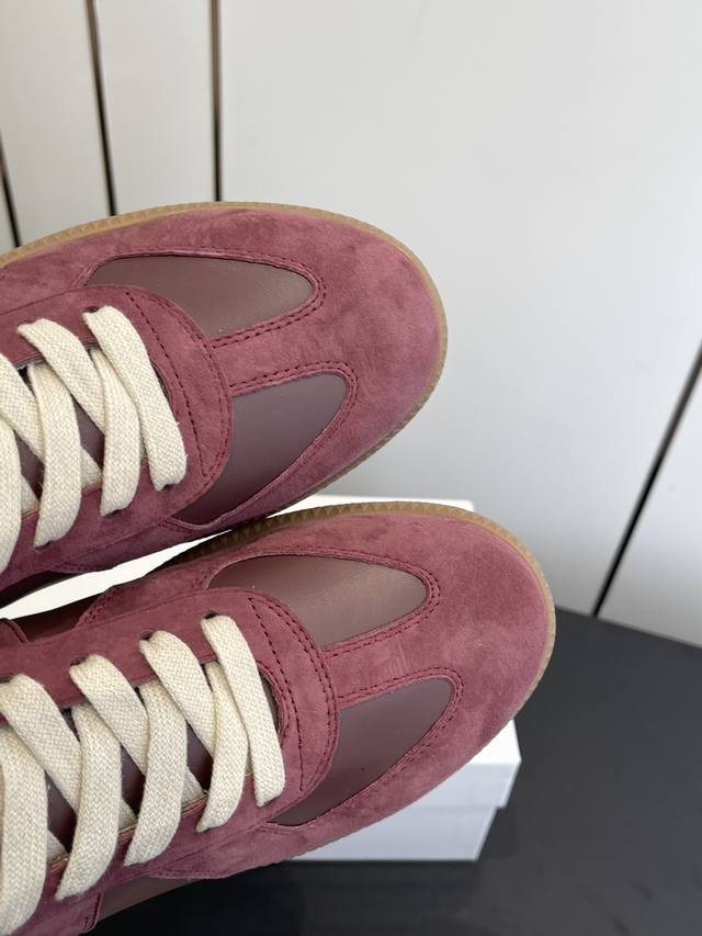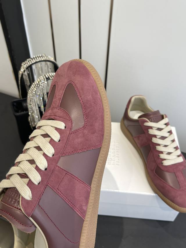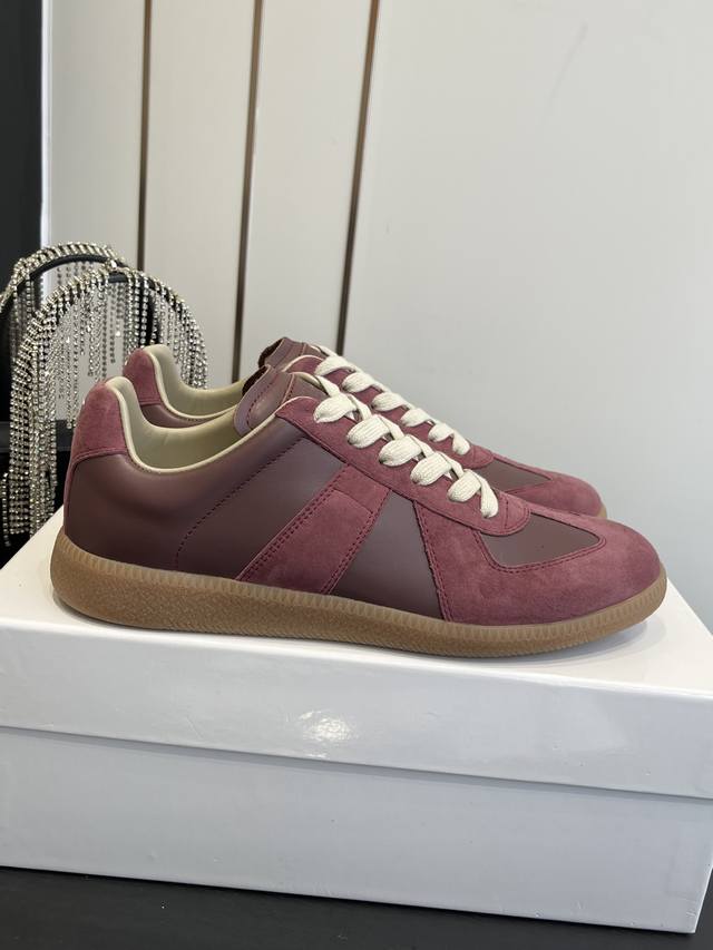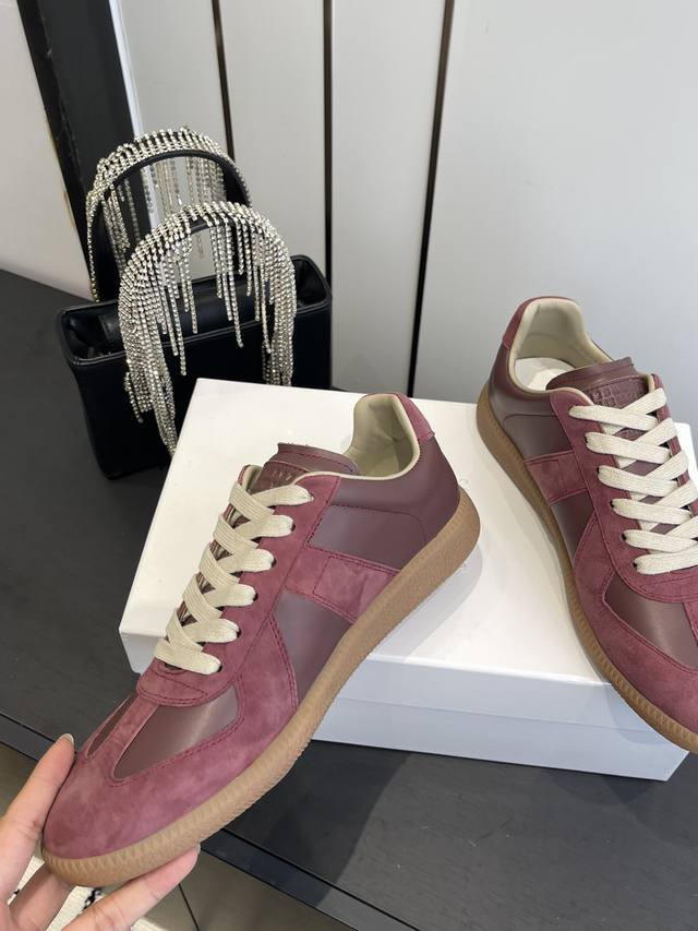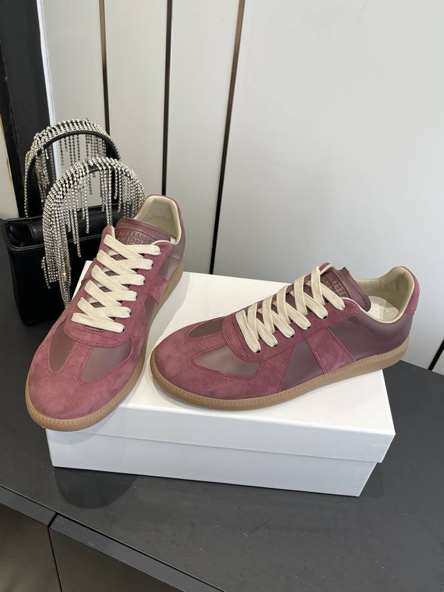 Maisonmargiela Mm6 Classic German Training Shoes, Casual Sports Shoes, Couple Style. A designer brand, a light luxury brand. This German training shoe continues the classic T-shaped genuine leather patchwork design. After multiple meticulous improvements by the design team, the soft and delicate characteristics are combined with the fashionable fabric, giving it both superior softness and comfort while maintaining good breathability. Comfort and quality go hand in hand, easily handling all seasons and any outfit. Original custom imported cowhide suede canvas. Imported soft sheepskin lining. Original molded rubber wear-resistant sole. Sizes: 35-45 (Women's 40, Men's 45, custom made).