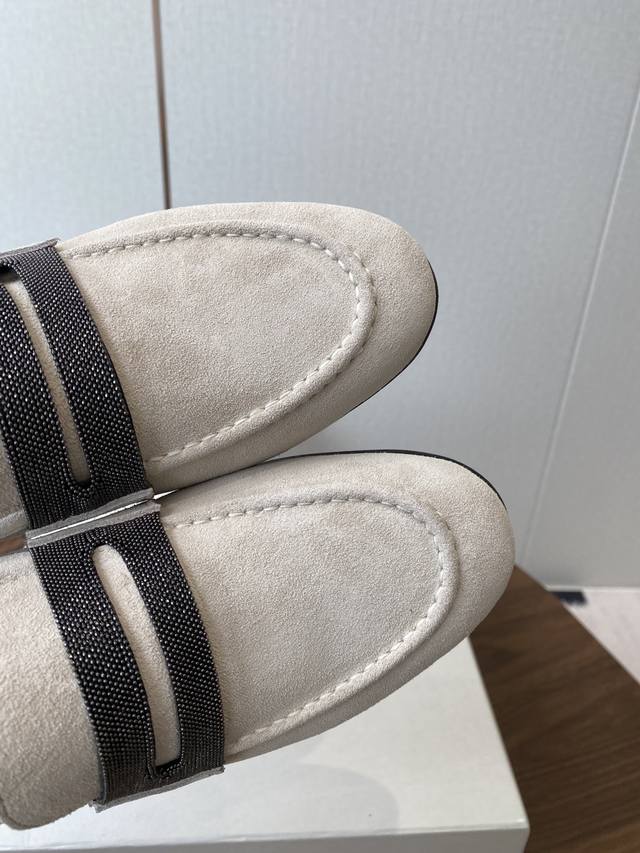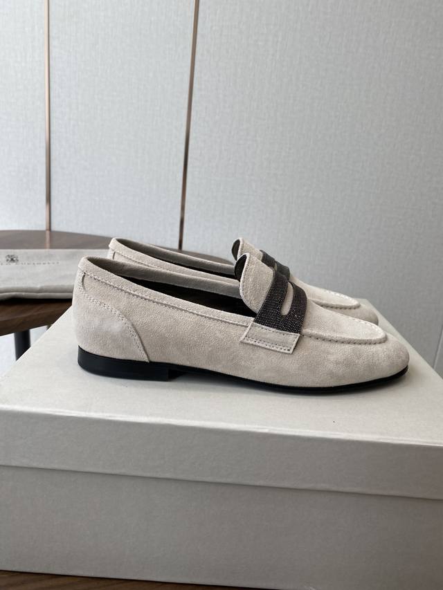 Manufactured by: Brunello Cucinelli 25Ss Autumn/Winter New Retro Loafers DDD Brunello Cucinelli is a well-known Italian brand, featuring a minimalist style and handcrafted beaded accessories! Retro yet sophisticated! Simple yet elegant, a very timeless style! DDD The king of high-end versatility, absolutely irresistible! Feels great and comfortable on the feet! Looks ordinary, but makes you look slim and stylish! DDD Suitable for any occasion, perfect for everyday work, fashionable yet capable! Pairs perfectly with skirts, trousers, trench coats, and overcoats! Super stylish! Suitable for all seasons. DDD Material: Original 1:1 custom-made calfskin high-gloss suede DDD Lining: Original Italian custom-made metal sheepskin lining, metal sheepskin insole DDD Outsole: Italian genuine leather outsole DDD Accessories: Original mold-made beaded chain, the level of luxury is indistinguishable from the clothing. DDD Size: #35-41 40 41 Custom orders are non-refundable and non-exchangeable.