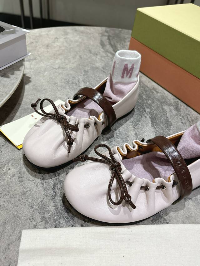 Marni 2026 Spring/Summer New Bow Ballet Flats, made of soft lambskin, with a hig