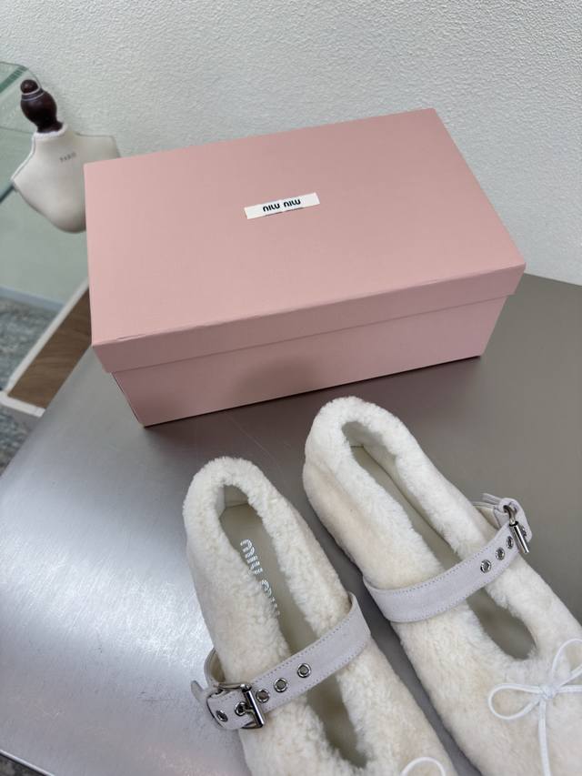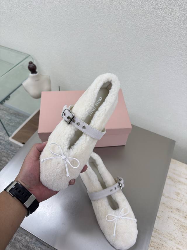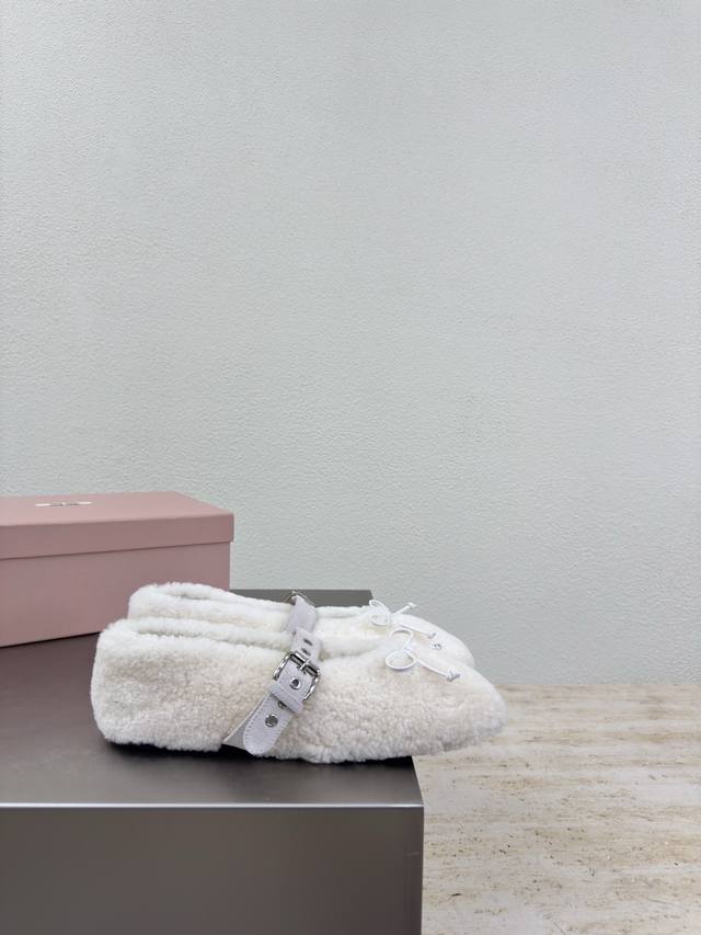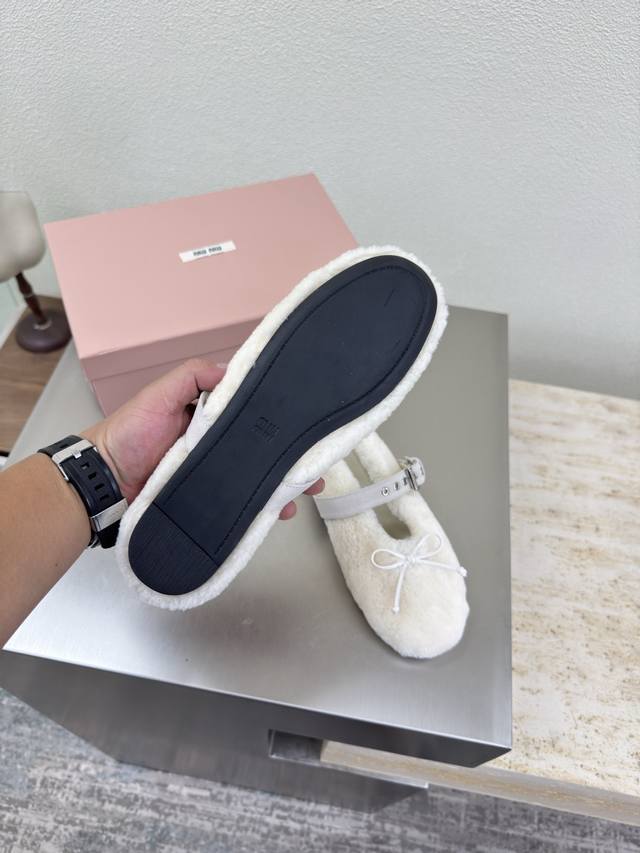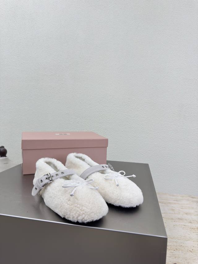 Mary Jane Pure Wool Flat Shoes Miu'miu DDD Off-white sheepskin curly upper design DDD Flat design DDD Series Miu'miu classic and comfortable construction DDD Original molded outsole high-quality DDD Original sheepskin upper DDD Lambskin lining DDD 3D stitching DDD Original molded outsole non-slip and durable DDD Original and matching design DDD Girlish and comfortable DDD Matching design DDD Sizes 35 36 37 38 39 40 41 40 41 customizable DDD Original packaging included DDD