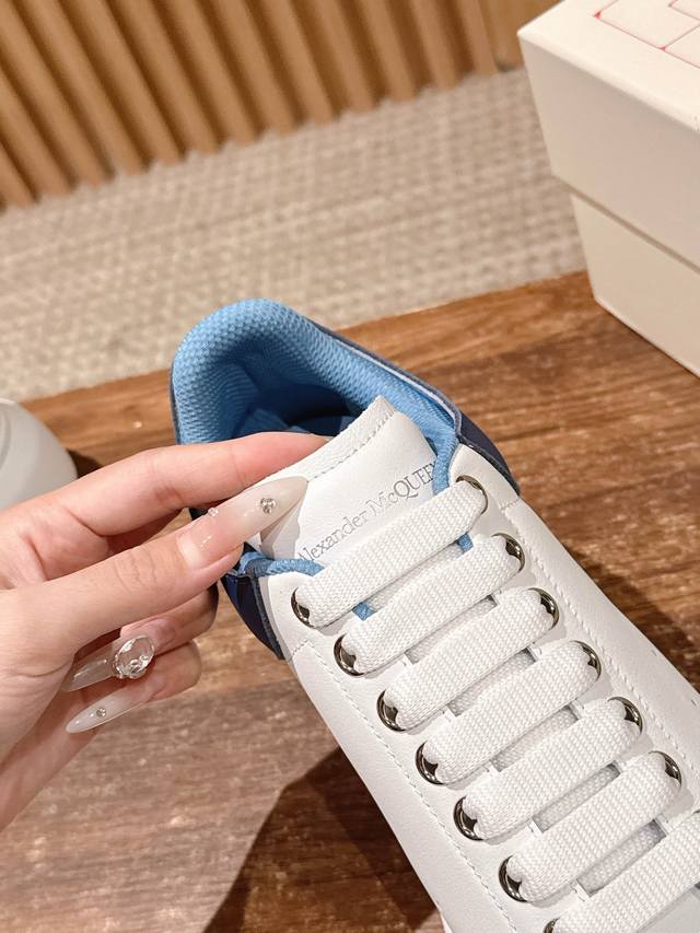 Men's +10 Dark Blue Leather & Mesh# McQueen is undoubtedly the king of classic white sneakers! There are quite a few counterfeiters on the market, and the versions vary greatly, but they are still quite different from the real thing! Please see our exclusive features: 1. Exclusively customized latest silk cowhide leather; 2. Upgraded last; 3. Upgraded original non-yellowing IP outsole! The outsole mold was newly made at a cost of over 20,000 RMB! The color has also been upgraded! From the material and outsole to the hardware, we want to give you a truly authentic experience! Upper material: Exclusively customized imported silk cowhide leather, original leather. Insole material: Top-grade imported knitted breathable lining! Exclusive anti-counterfeiting chip label. Size: Women's sizes 35-39, 40 (made-to-order, no returns/exchanges); Men's sizes 39-45, 46, 47+70 (made-to-order, no returns/exchanges).