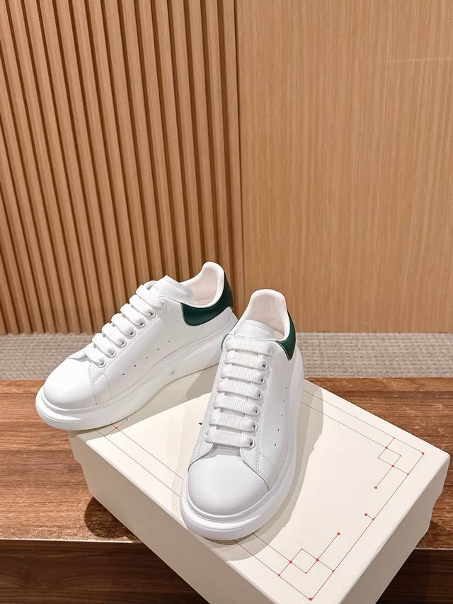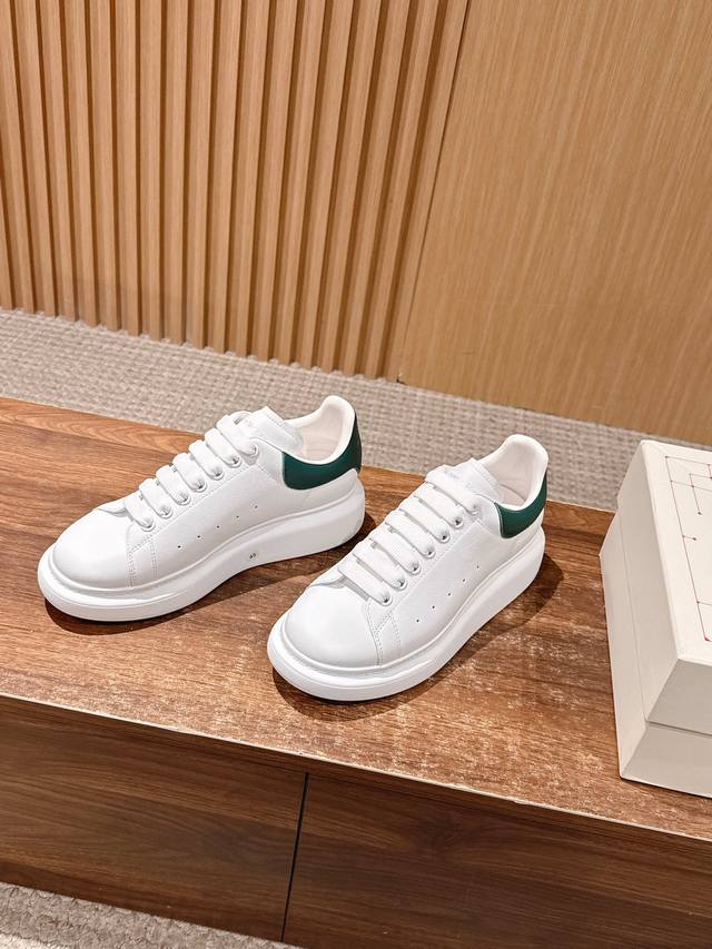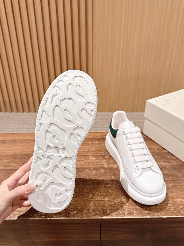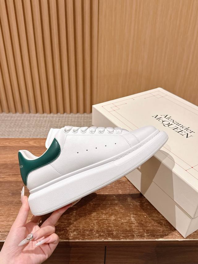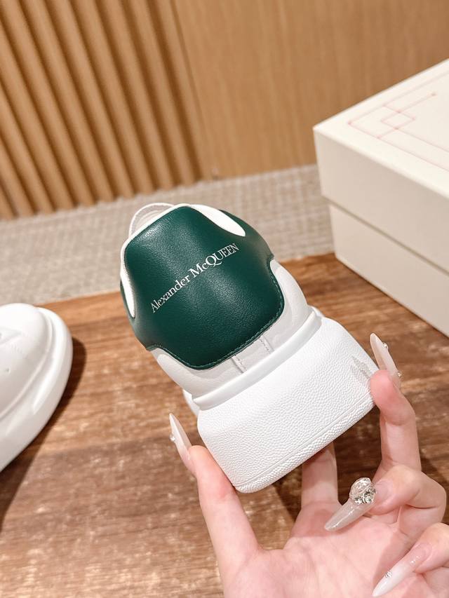 Men's +10 Dark Green Leather Heel# McQueen is undoubtedly the king of classic white sneakers! There are indeed many counterfeiters on the market, with varying quality, but they are still quite different from the authentic product! Please see our exclusive features: 1. Exclusively customized latest silk cowhide leather; 2. Upgraded last; 3. Upgraded original non-yellowing IP outsole! The outsole mold was newly made at a cost of over 20,000 RMB! The color has also been upgraded! From the material and outsole to the hardware, we want to give you a truly authentic experience! Upper Material: Exclusively customized imported silk cowhide leather, original leather. Insole Material: Top-grade imported knitted breathable lining! Exclusive anti-counterfeiting chip label. Size: Women's sizes 35-39, 40 (made-to-order, no returns/exchanges); Men's sizes 39-45, 46, 47+70 (made-to-order, no returns/exchanges).
