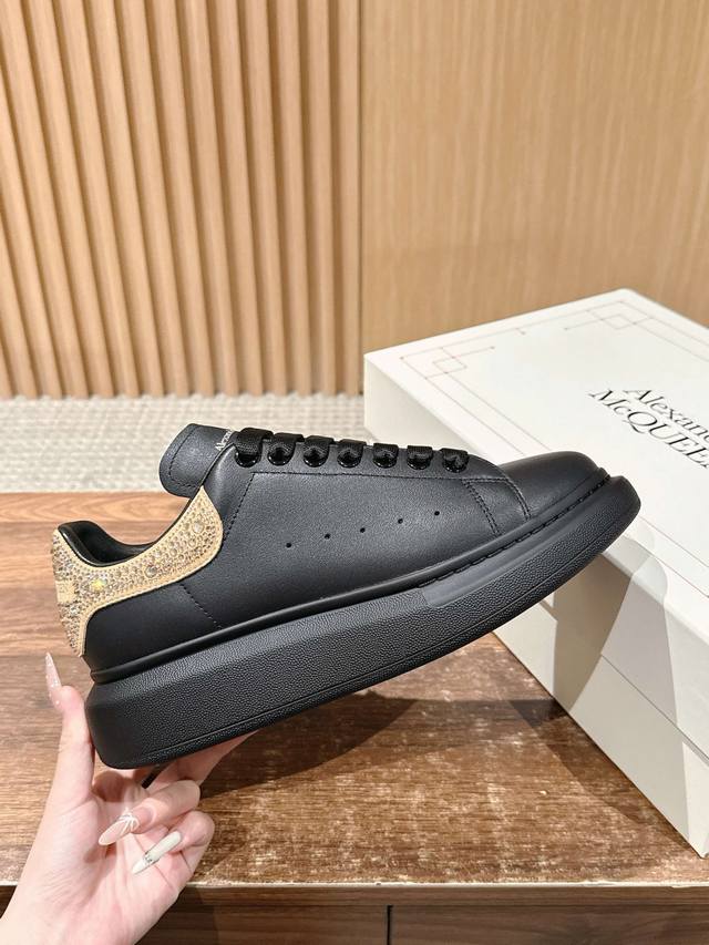 Men's +10 Gold Diamond Black Leather# McQueen is undoubtedly the king of classic white sneakers! There are indeed many counterfeiters on the market, with varying quality, but they are still quite different from the authentic product! Please see our exclusive features: 1. Exclusively customized latest silk cowhide leather; 2. Upgraded last; 3. Upgraded original non-yellowing IP outsole! The outsole mold was newly made at a cost of over 20,000 RMB! The color has also been upgraded! From the materials and outsole to the hardware, we want to give you a truly authentic experience! Upper material: Exclusively customized imported silk cowhide leather, original leather. Insole material: Top-grade imported knitted breathable lining! Exclusive anti-counterfeiting chip label. Size: Women's sizes 35-39, 40 (made-to-order, no returns/exchanges); Men's sizes 39-45, 46, 47+70 (made-to-order, no returns/exchanges).