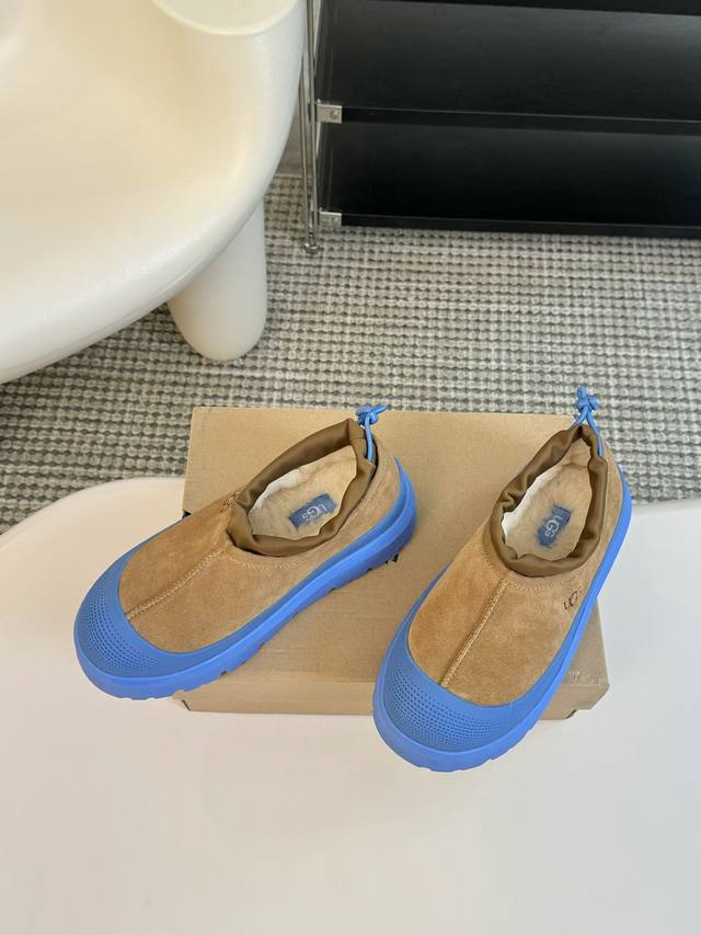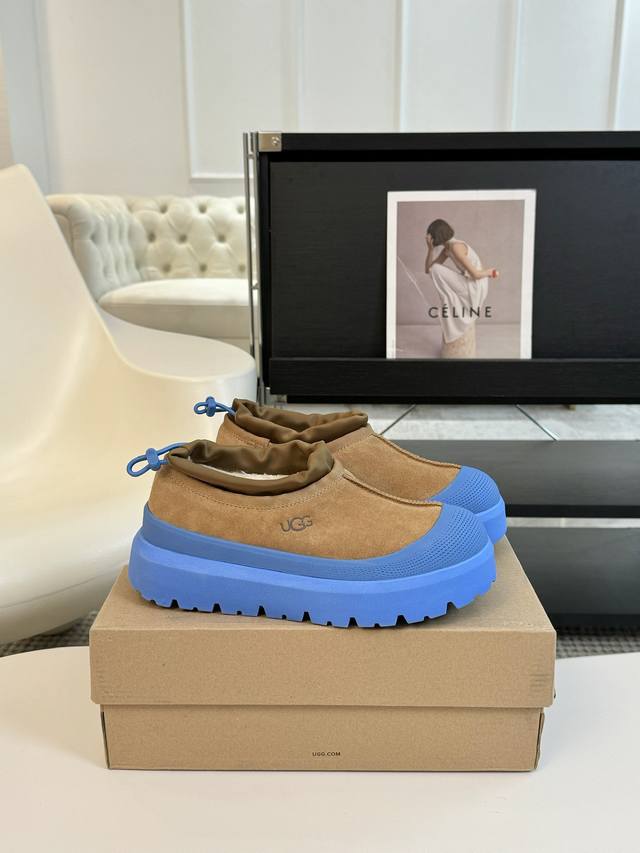 Men's 10 DDD Ugg Wang Yibo's Tasman DDD Ugg Tasman Weather Hybrid slip-on unisex classic Tasman silhouette with a functional color-blocked design featuring a bright orange sole. Made with eco-friendly, waterproof, and snowproof materials, it combines style and functionality. DDD Pair it with the new Ugg Keane fur-trimmed color-blocked jacket for a fresh, light outdoor style, opening up a new experience for early autumn outings. DDD Upper: Cow suede; Lining: Sheepskin; Outsole: EVA foam sole. DDD Size: #35-40 Women's 39-44 Men's DDD