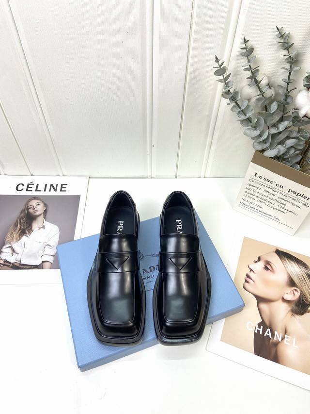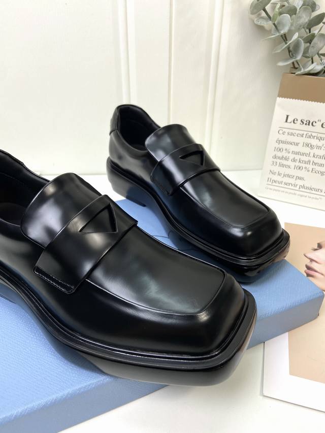 prad*, unisex thick-soled loafers. Cool and stylish. The triangle heel design is exquisite.