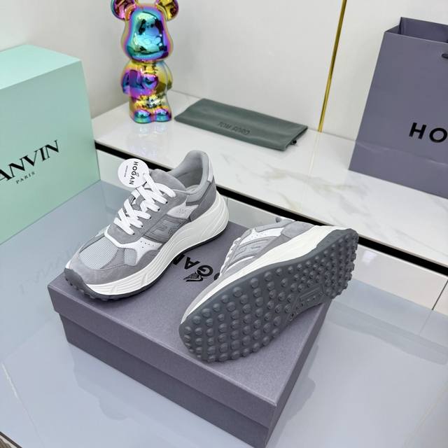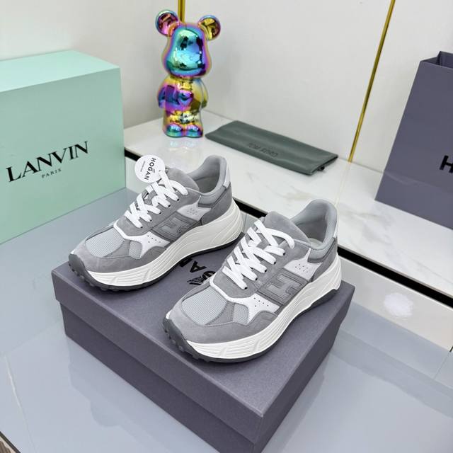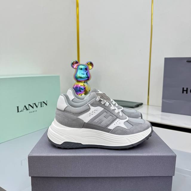Hogan 2025 New Couple Style H-Stripes Series Couple Thick-Soled Dad Shoes, Flying Boat Shoes, Casual Sports Shoes.