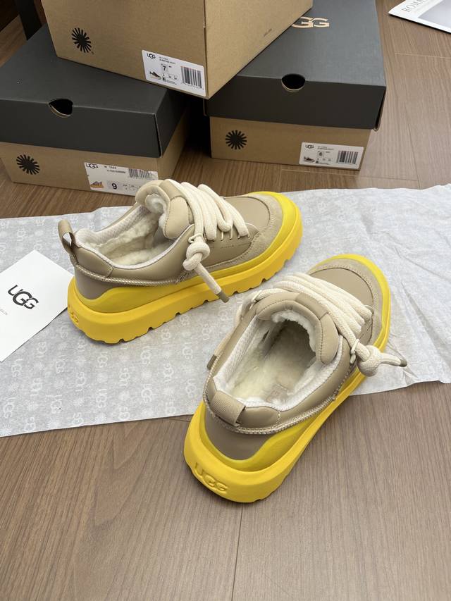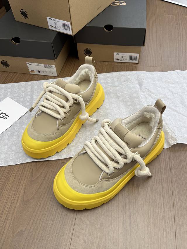 Men's +50 RMB, New Arrival + Wang Sulong's Same Style Lace-up Waterproof Shoes, Couple's Autumn/Winter New Bread Shoes | The Warm and Soft Winter Boots You'll Fall in Love With Are Here! The quality is captivating at first glance, and you'll understand how amazing they are once you touch them. The upper is made of genuine full-grain cowhide combined with cow suede, the two textures creating a layered look. The smooth cowhide is durable and dirt-resistant, easily wiping away mud and water splashes. The cow suede has a delicate, plush feel, warm and luxurious to the touch. Paired with chunky rope laces, even a casual knot feels relaxed, perfectly capturing the current trend of effortless chic. The most amazing part is the inner sheepskin lining! This is not comparable to ordinary synthetic wool; it's made of high-quality imported Australian lambskin, so dense and thick it's like wrapping your feet in a small blanket. It's moisture-wicking and breathable, keeping your feet dry and warm all day without any stuffiness or dampness. The DDD shoe features a dual-technology EVA outsole that feels as light as walking on cotton, preventing ankle fatigue even after long walks. The lower layer incorporates a non-slip spiderweb rubber with deep, dense treads, ensuring excellent grip in rain, snow, and other conditions. The contrasting color design makes the outsole a striking feature, instantly boosting its appeal. Available in sizes 35-44.