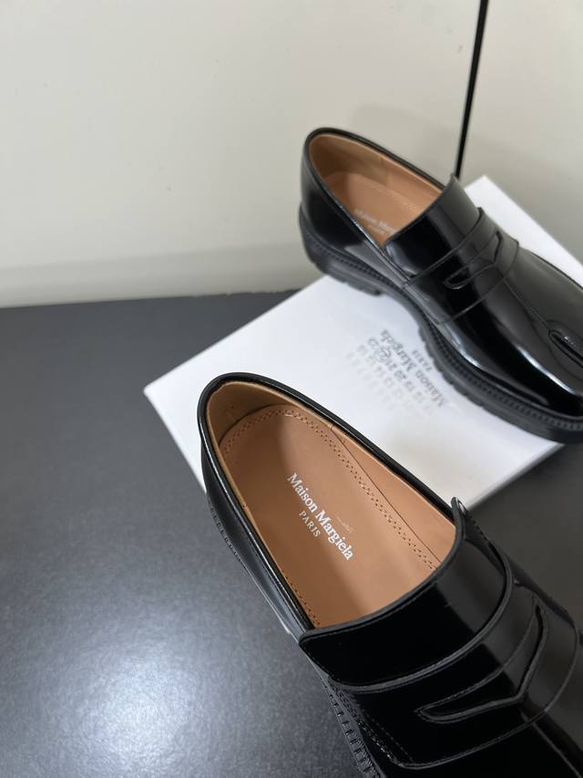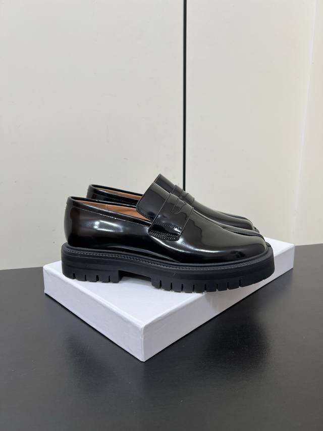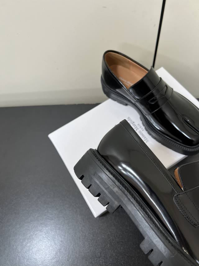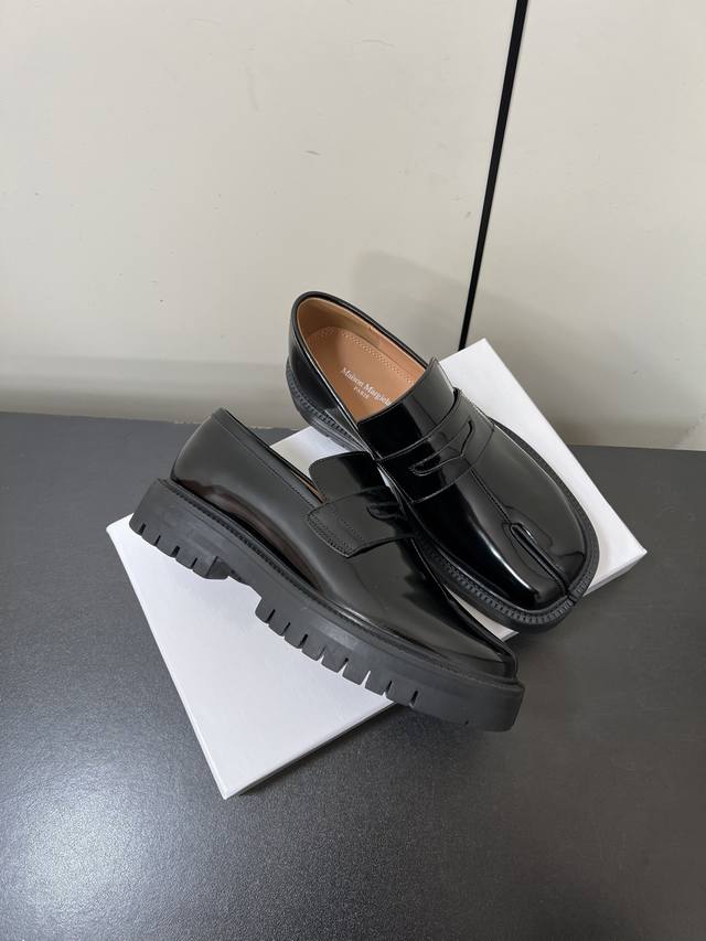Men's Maison Margiela Mm6 High-Version Platform Split-Toe Tabi Loafers for Couples! Original purchase, double-layer sole, stylish design, easily matches various styles, a blessing for short legs, instantly transforms legs into longer ones! Upper made with imported original split-edge beads. Insole is made of water-dyed cowhide, original molded rubber outsole! Sole thickness: approx. 4cm. Sizes: 35-45 (Women's 40, Men's 45). Custom orders are non-refundable and non-exchangeable. Comes with original packaging.
