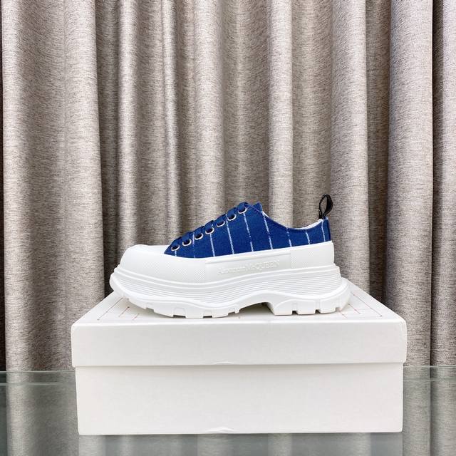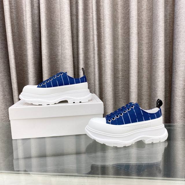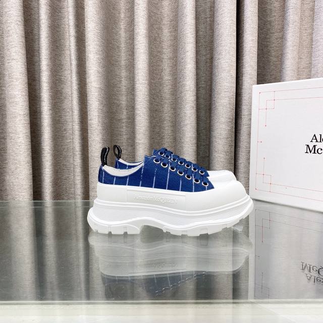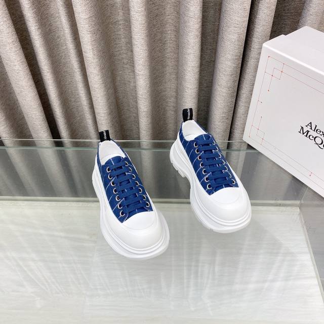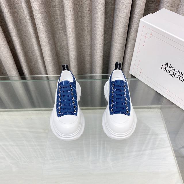 Top quality Alexander Mcqueen new series thick-soled dad shoes, retro and trendy items, minimalist style canvas, thick sole, wide head version completely integrated contour lines more simple, showing a retro texture