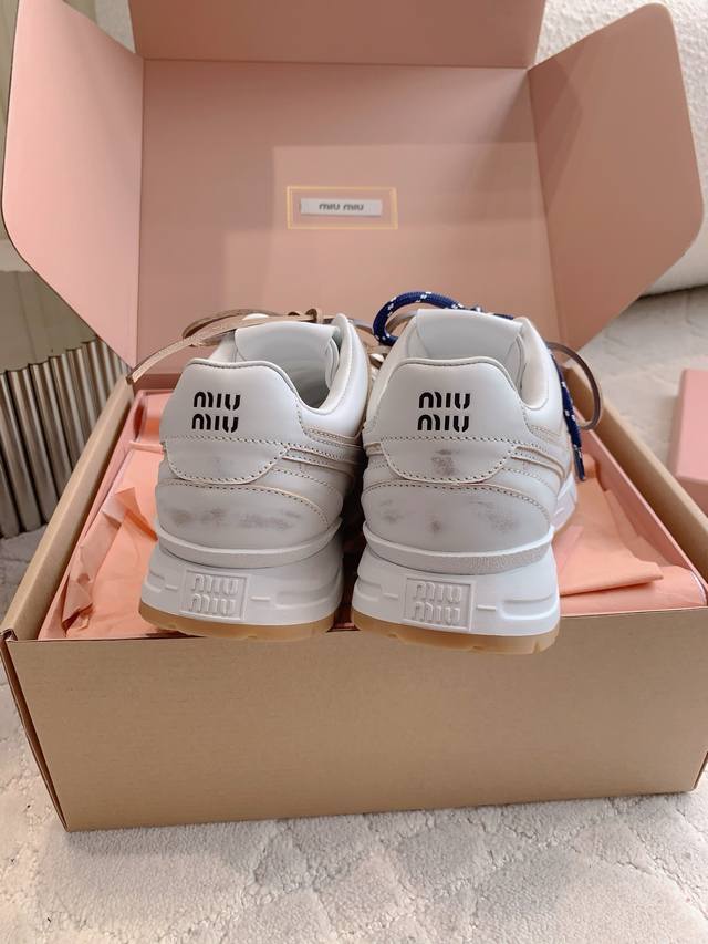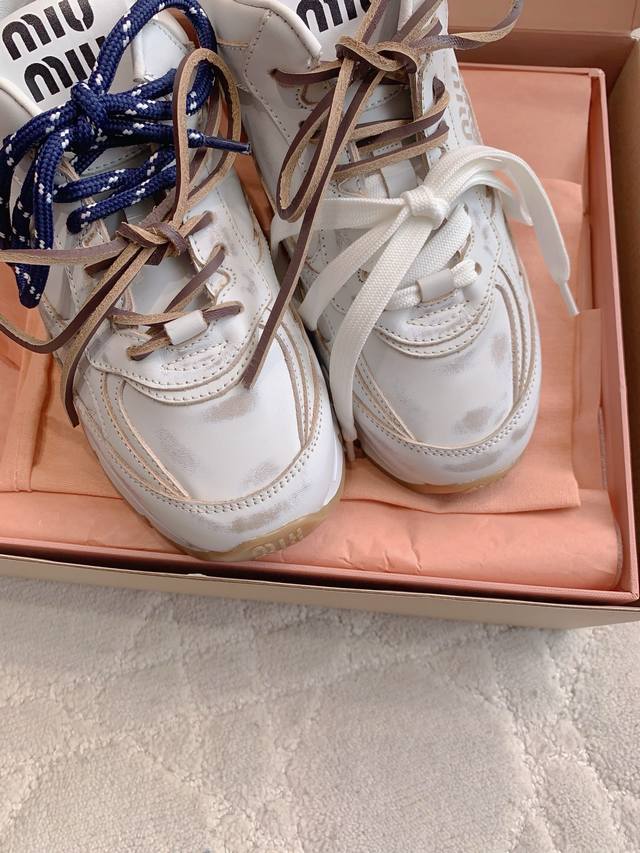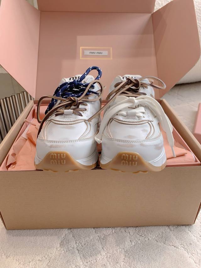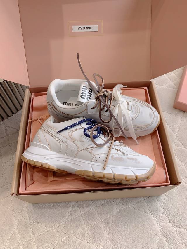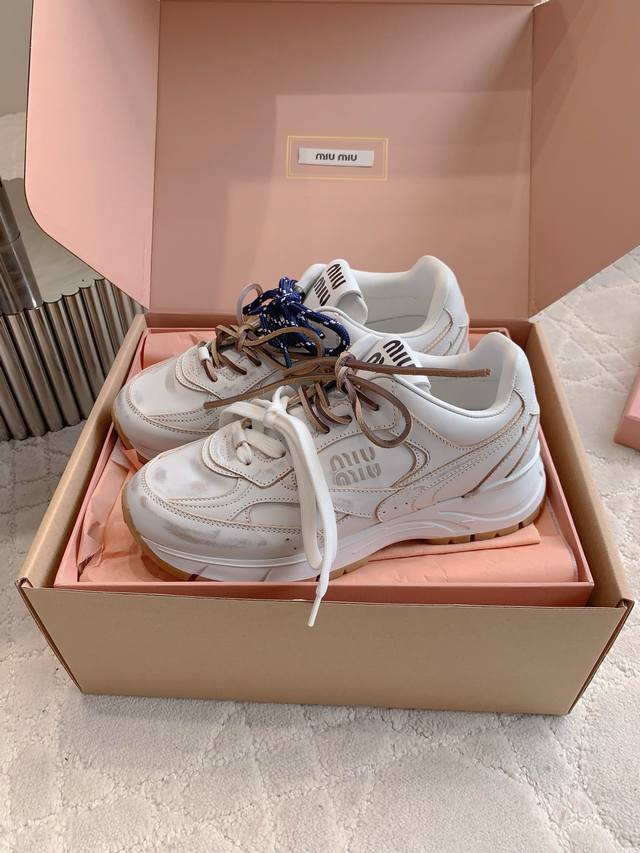 Miu's new distressed dad shoes with thick soles instantly transform into long legs. These shoes are so beautiful that they can be worn with any outfit. The colors are so beautiful