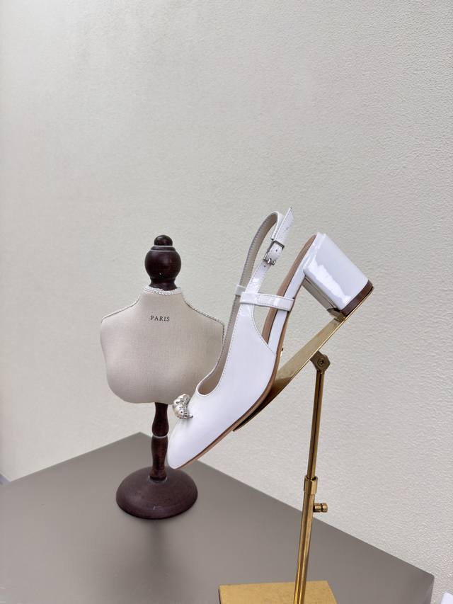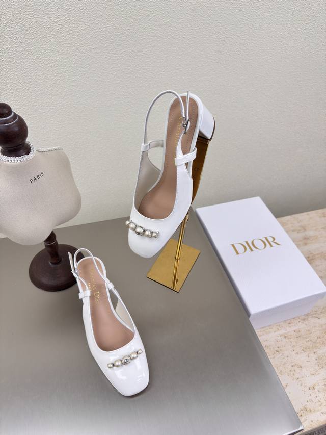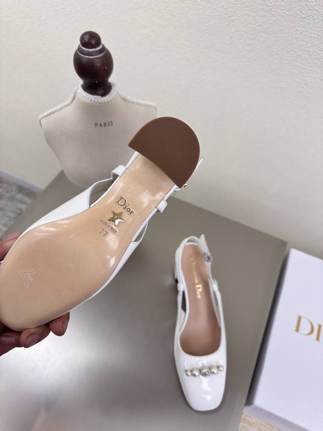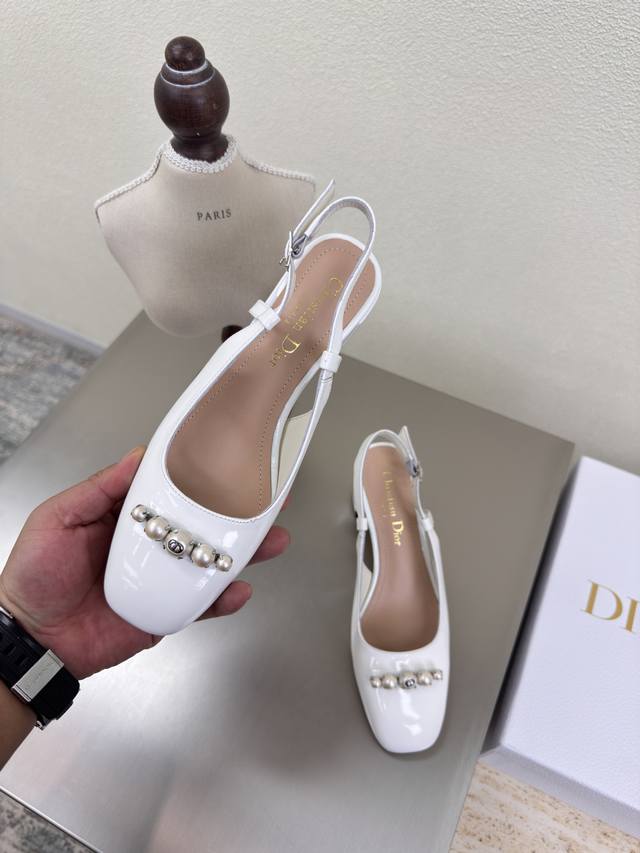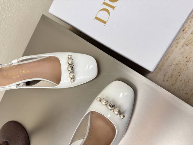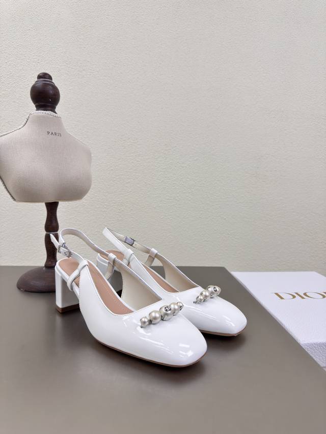 Mid-Heel, Open Back, Pearl Decoration, High-Quality