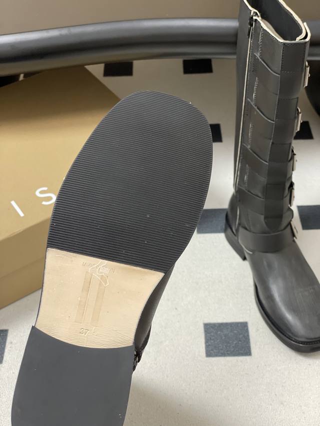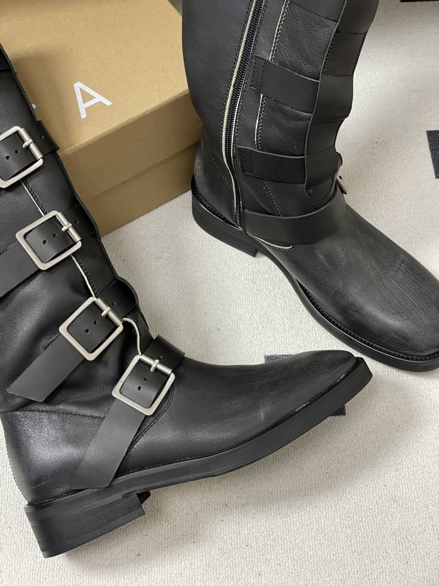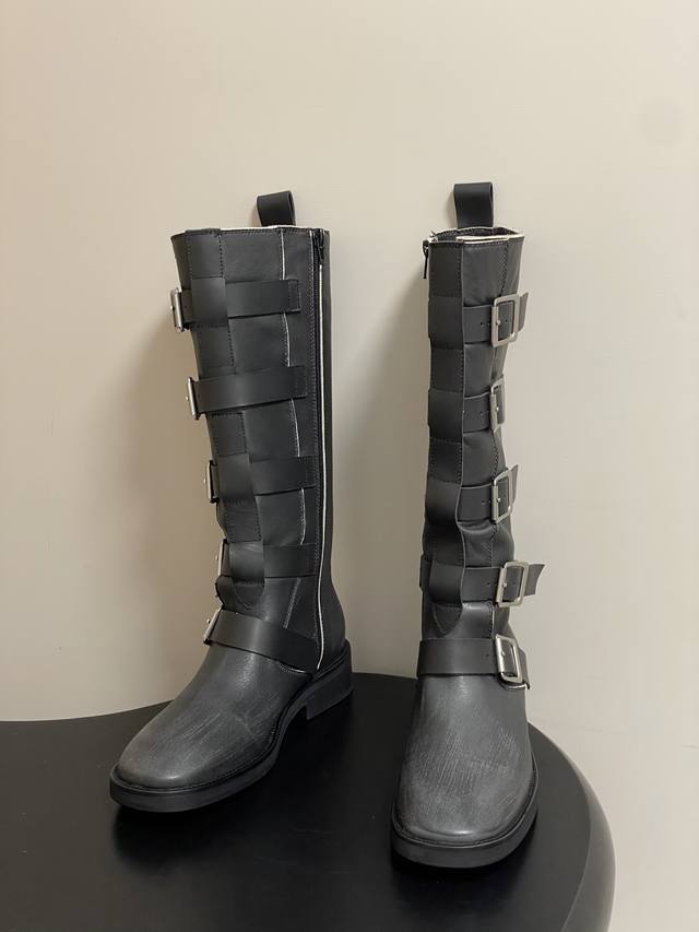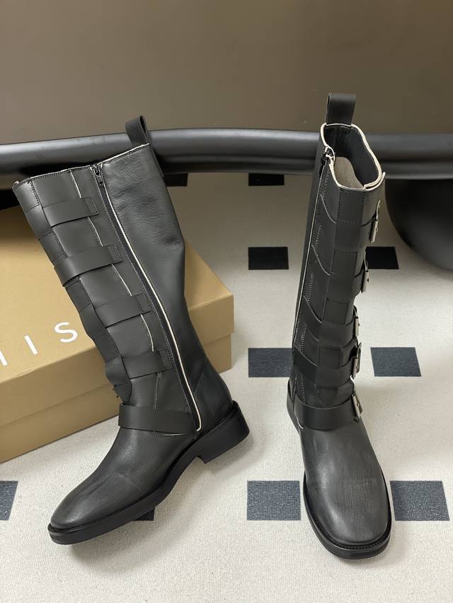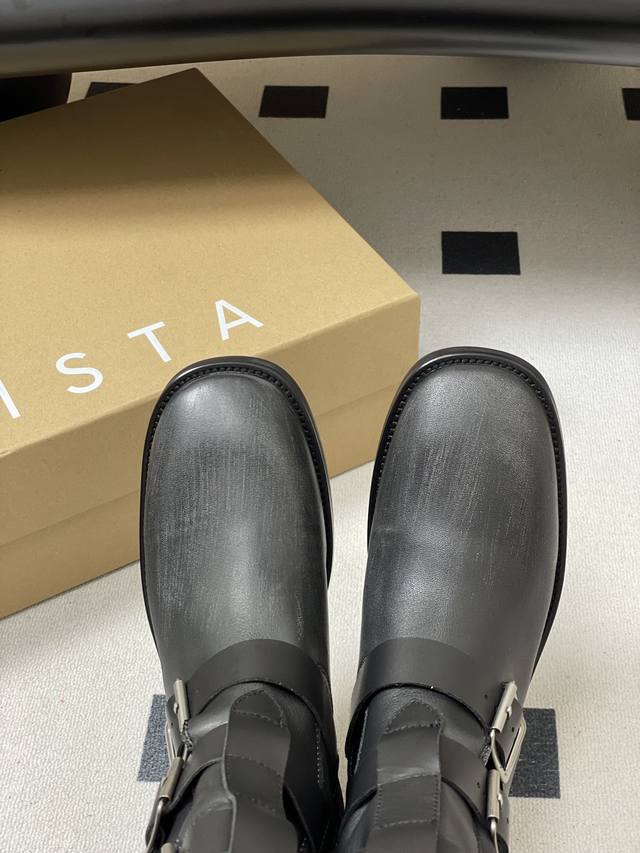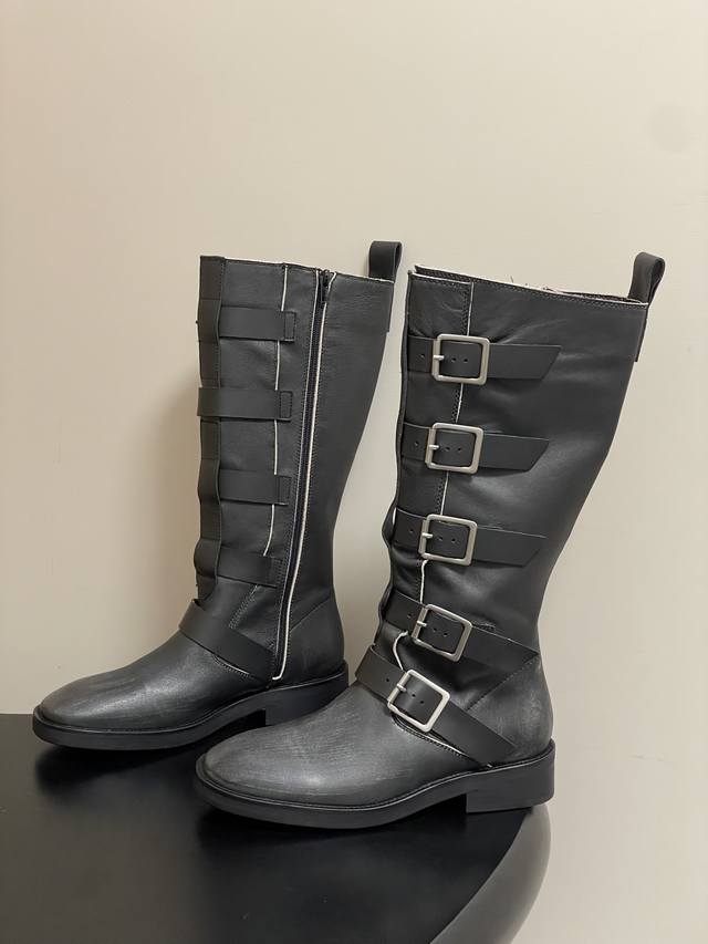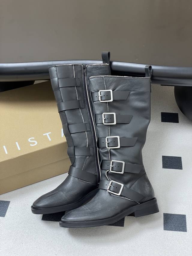 Miista 25Ss Autumn/Winter New Buckle Motorcycle Style Genuine Leather Long Boots with Side Zipper
