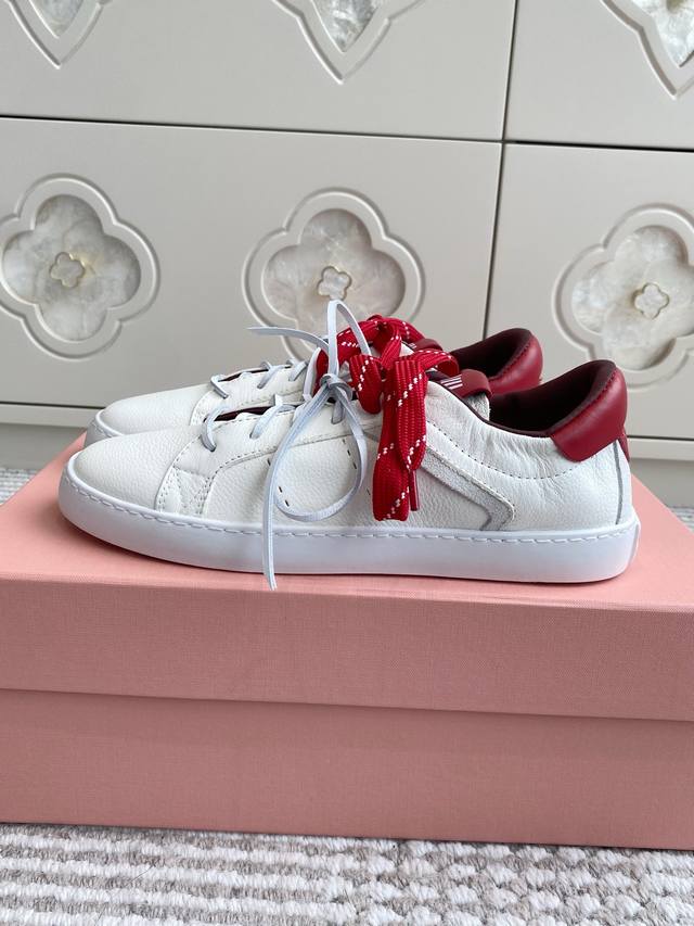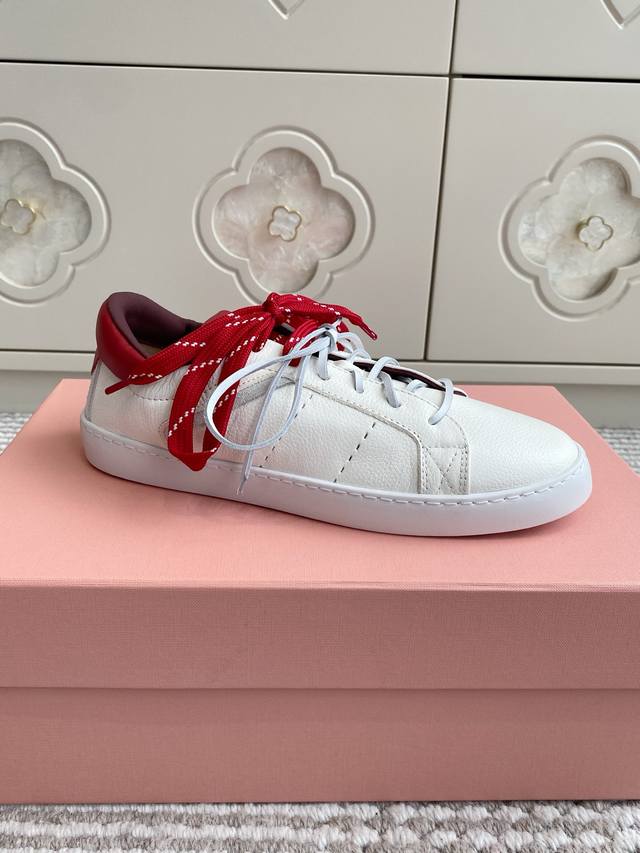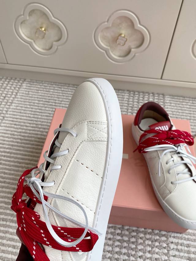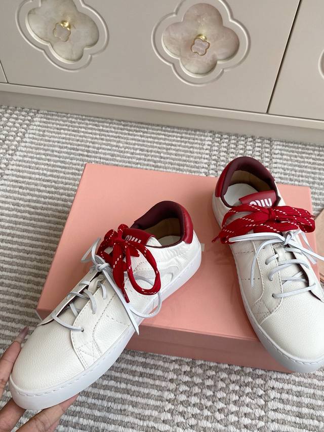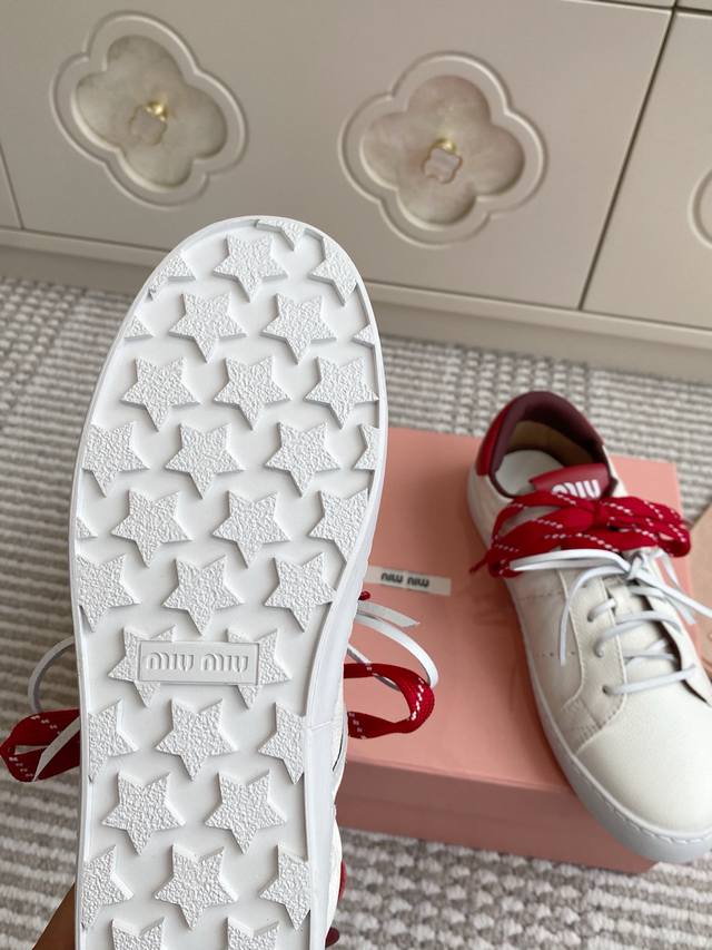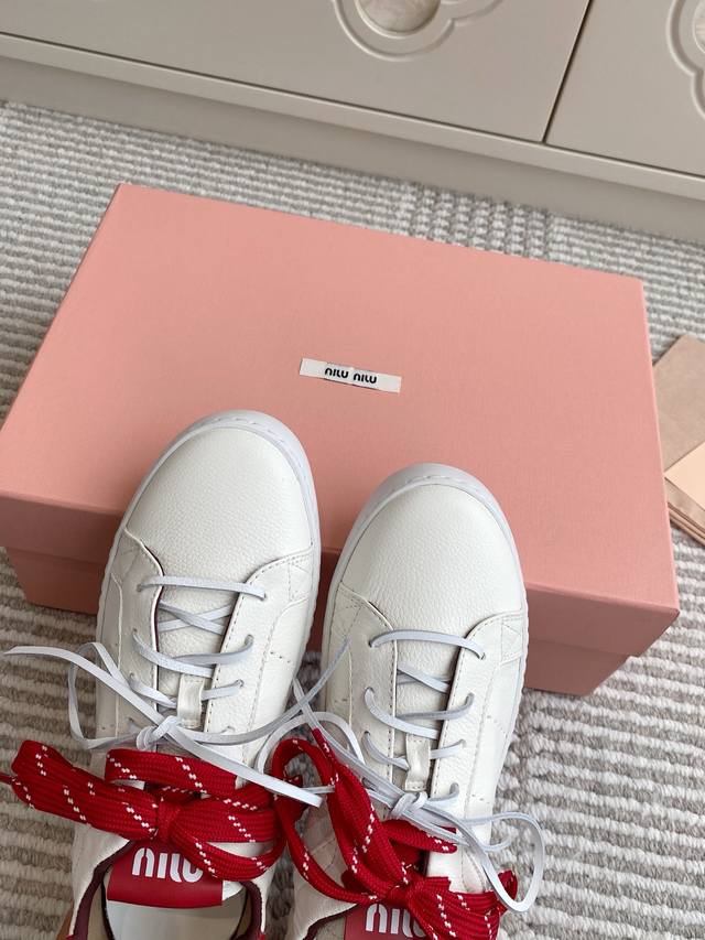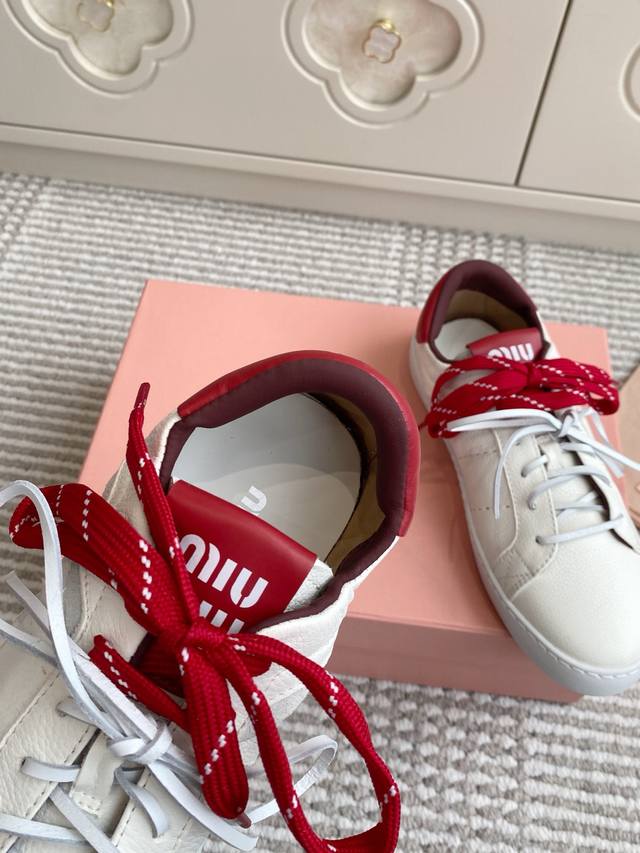 Miu Mi* 25Ss. Miu Miu thin-soled biscuit-soled 25Ss, new spring/summer British-style lace-up white casual shoes.
