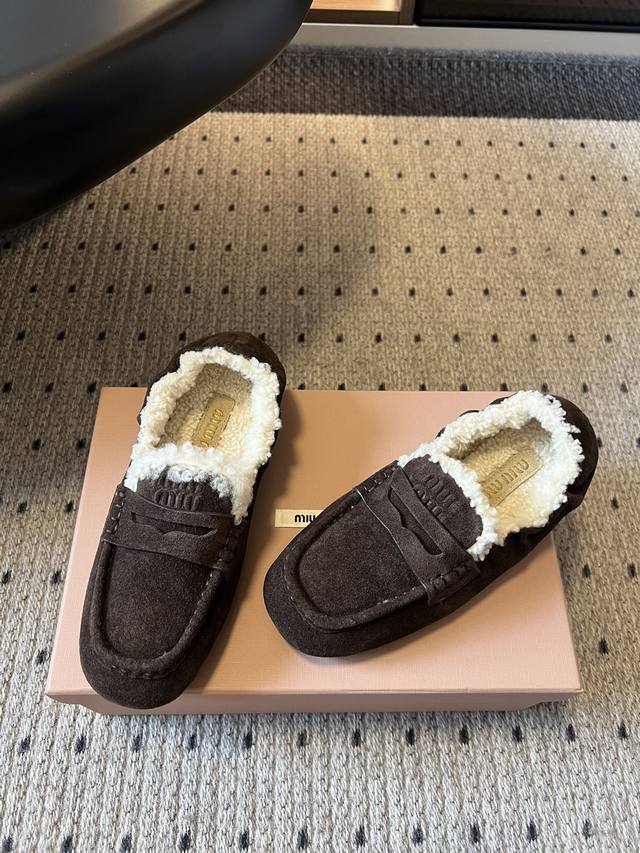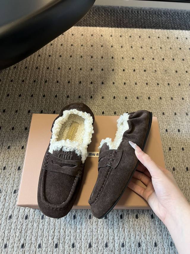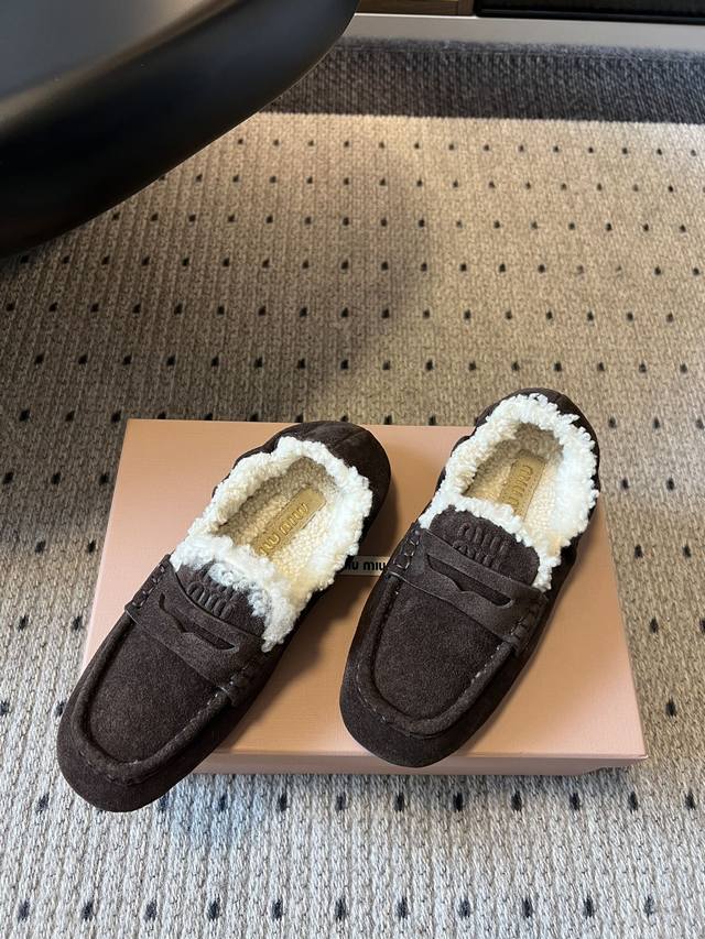 Miu Mi* 25Ss Runway Style Closed-Toe Furry Loafers