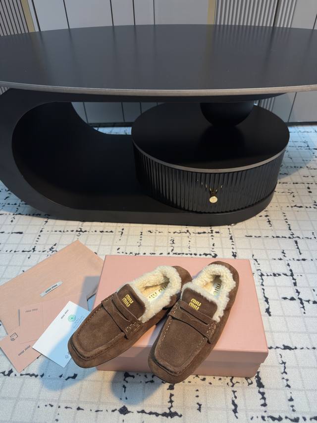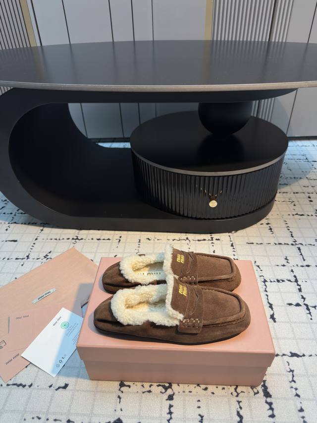miu Mi* 25Ss show-style furry closed-toe loafers . Perfectly matched, effortles