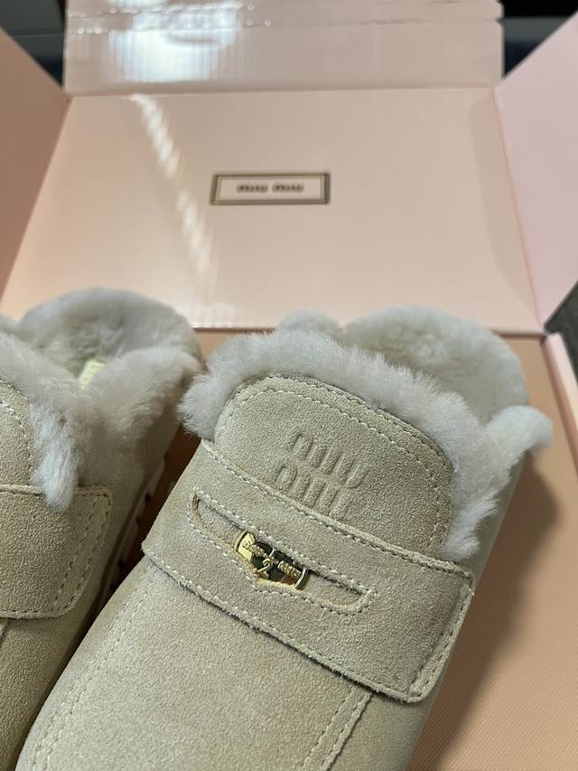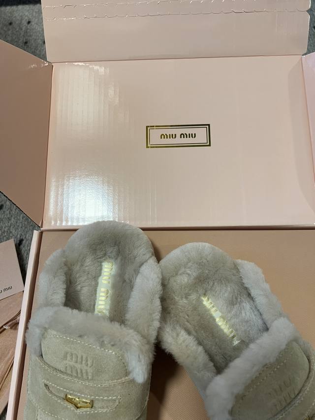 Miu Mi* 25Ss show-style gold coin closed-toe furry shoes made in Dongguan. Perfectly matched, they're effortless to wear in and out of closets. They're incredibly popular! These trendy shoes feature trendy elements and a luxurious feel, perfect for casual early fall wear. They feel incredibly comfortable on the feet, a testament to the fashion revolution. Miu Miu leads the trend with its unstoppable style. Upper: High-mercerized cow suede with sheep wool. Lining: Australian grainy Merino wool. Outsole: Original 1:1 TPU outsole. Sizes: 35-41. 40.41 Made to order, no returns or exchanges.
