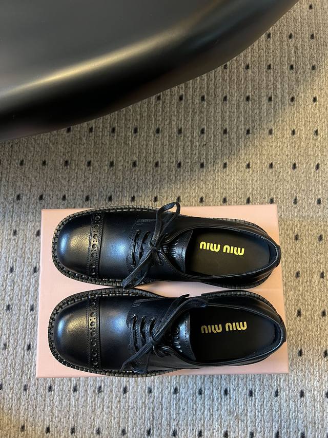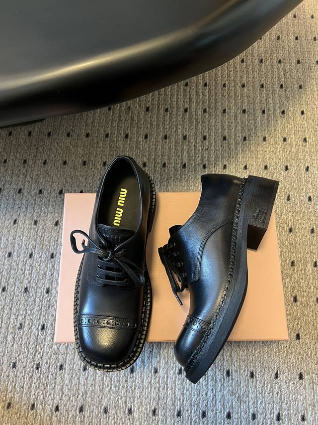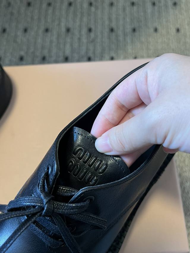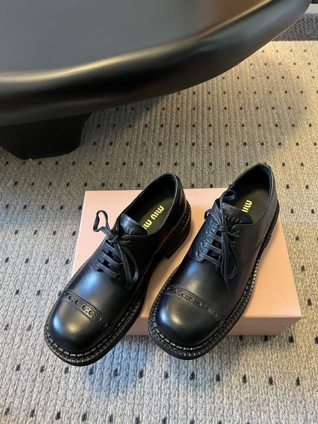 Miu Mi* 25Ss's new early fall Derby shoes feature a retro, text-inspired design. Miu Miu has released new fall and winter items. The waxed leather is a perfect match for autumn, with a subtle British flair. The lace-up, distressed Derby shoes are comfortable to wear, and the detailed design stands out from the crowd of loafers. The overall shape is sleek and delicate, not at all bulky, and feels great on the foot. For casual outings, Miu Miu's brown lace-up loafers are perfect. Paired with jeans, they create a casual yet stylish look. The subtle lace details add a touch of uninhibited flair to the overall look, making you the center of attention as you stroll down the street. Fabric: Cowhide Lining: Cowhide Outsole: Rubber Outsole Sizes: 35-41 40.41 Customization is non-refundable.