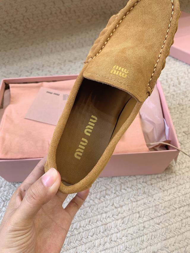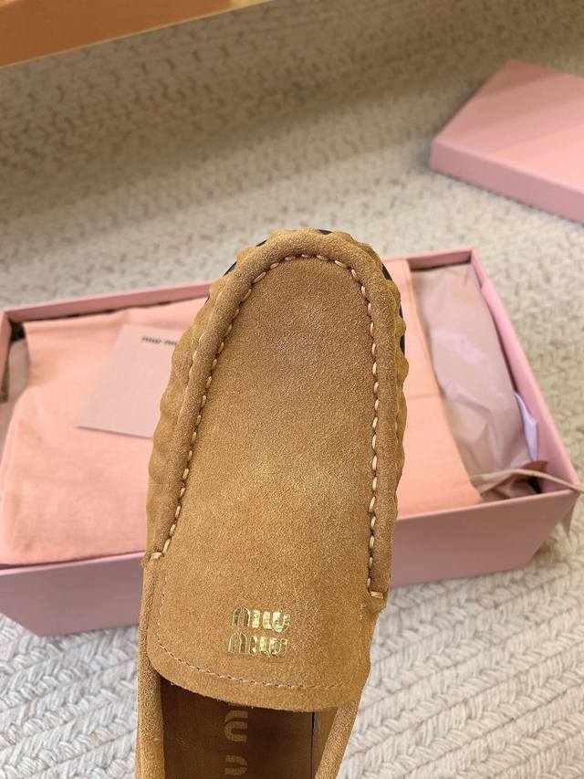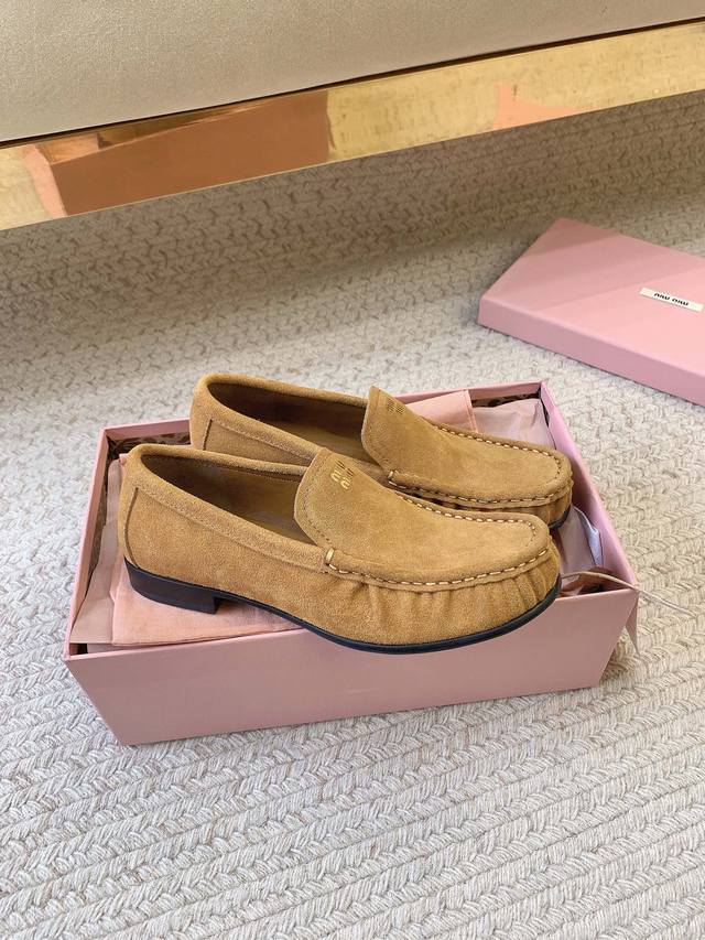 Miu Mi* * Spring/Summer 2025 New Suede Loafers DDD Upper: Custom imported suede calfskin DDD Sizes: 35-39, Size 40 can be custom-made but not returnable or exchangeable DDD