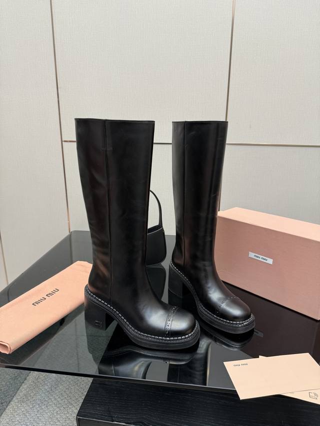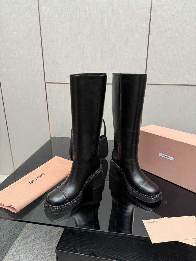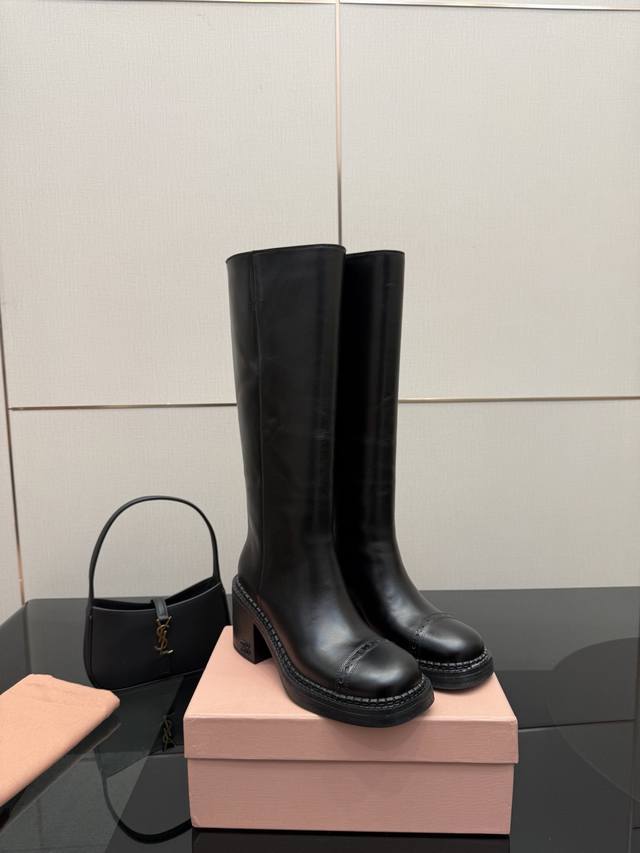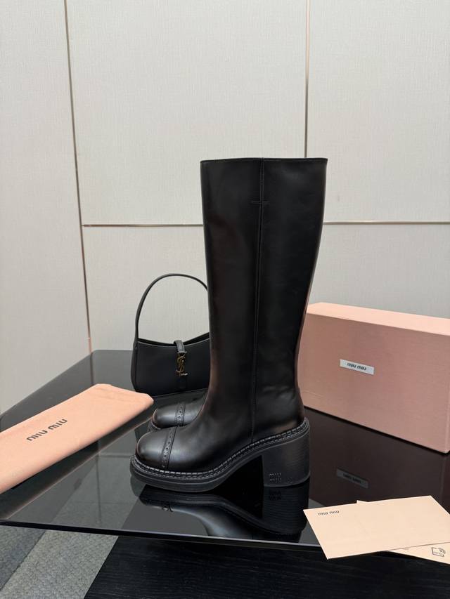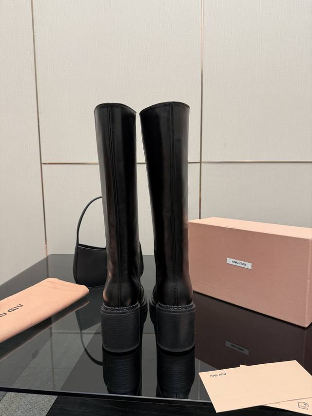 Miu Mi*25 Autumn/Winter Casual Long Boots, Coat Matching Pairing, Popular at Celebrity Ordering Events and Try-on Events, Super Casual and Versatile, You Won't Regret Buying It! Genuine Authentic Custom-Made, True to the Original. Upper: Custom Imported Sheepskin; Sole: Genuine Leather; Color: Black; Sizes: 35-39, Size 40 Available for Customization, No Returns or Exchanges; Full Packaging Included.