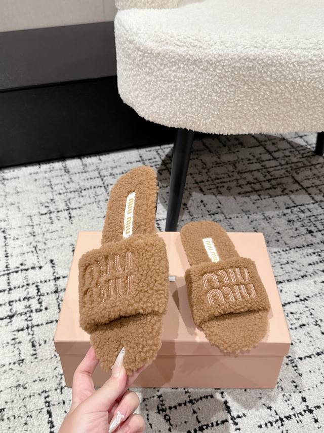 Miu MiuحMiao Miu 25 Autumn and Winter New Wool Slippers