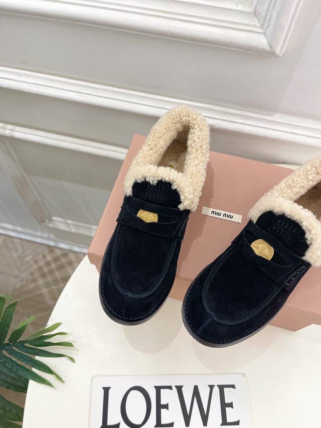 2025 Autumn/Winter New Arrival Gold Coin Retro Fur Loafers!